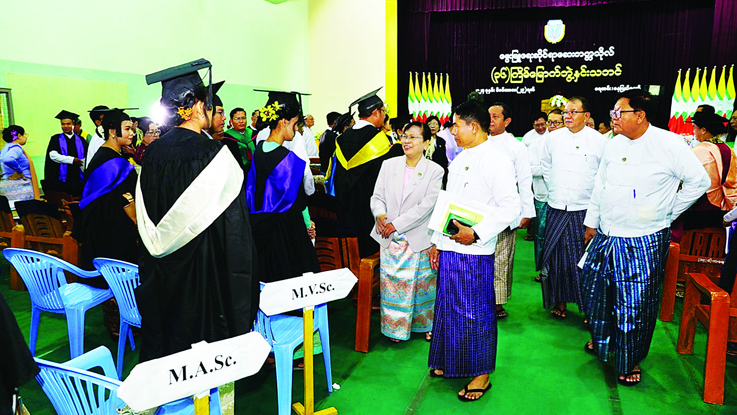 စိုက်ပျိုးရေး၊ မွေးမြူရေးနှင့် ဆည်မြောင်းဝန်ကြီးဌာန မွေးမြူရေးဆိုင်ရာဆေးတက္ကသိုလ်၏ (၃၆) ကြိမ်မြောက် ဘွဲ့နှင်းသဘင်အခမ်းအနားကို ယနေ့နံနက်ပိုင်းက ရေဆင်းရှိ အဆိုပါတက္ကသိုလ်၌ကျင်းပရာ ပြည်ထောင်စုဝန်ကြီး ဦးမင်းနောင်၊ ဒုတိယဝန်ကြီးများ၊ ဌာနဆိုင်ရာအကြီးအကဲများ၊ ပါမောက္ခချုပ်များ၊ ပါမောက္ခဌာနမှူးများနှင့် ဆရာ ဆရာမများ၊ ဘွဲ့ခံ ကျောင်းသား ကျောင်းသူများနှင့် မိသားစုများ တက်ရောက်ကြသည်။