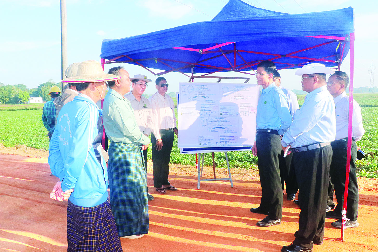သမဝါယမနှင့်ကျေးလက်ဖွံ့ဖြိုးရေးဝန်ကြီးဌာန ဒုတိယဝန်ကြီး ဦးမြင့်စိုးသည် ဧရာဝတီတိုင်းဒေသကြီး လမ်းပန်းဆက်သွယ်ရေးဝန်ကြီး ဦးနေမျိုးအောင်နှင့်အတူ ယနေ့နံနက်ပိုင်းက ကန်ကြီးထောင့်မြို့နယ် သရက်ချောင်းကျေးရွာသို့ သွားရောက်ပြီး ကျေးလက်လမ်းဖွံ့ဖြိုးရေးဦးစီးဌာန၏ ၂၀၂၄-၂၀၂၅ ဘဏ္ဍာနှစ် ခွင့်ပြုရန်ပုံငွေဖြင့် ဆောင်ရွက်ခဲ့သော သရက်ချောင်းကျေးရွာနှင့် ကုန်းစုကျေးရွာချင်းဆက်လမ်း အရှည် ၄ ဒသမ ၅ ဖာလုံ ခွဲကျောက်အမာခံခင်းခြင်းလုပ်ငန်းကို ကြည့်ရှုစစ်ဆေးသည်။