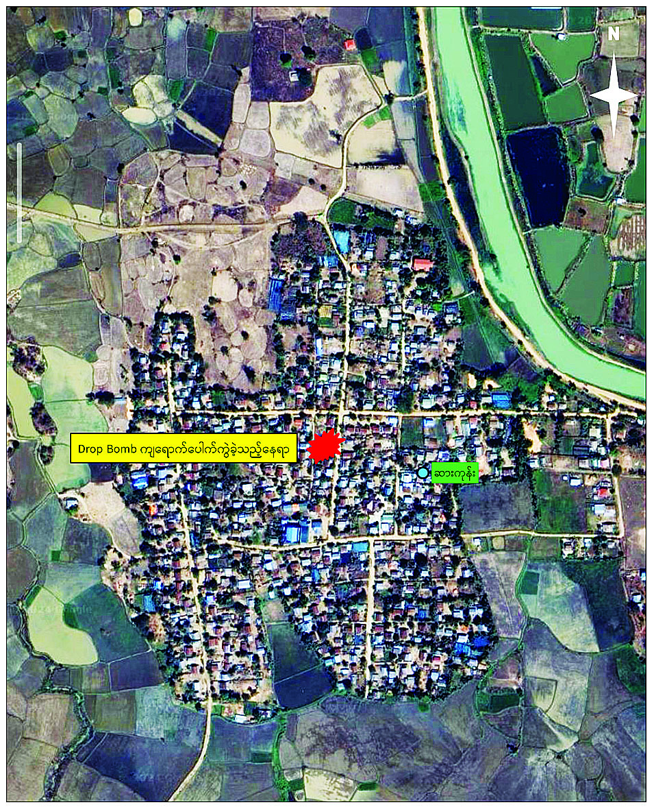 အလားတူ စစ်ကိုင်းတိုင်းဒေသကြီးကန့်ဘလူမြို့နယ် ဆားကုန်းကျေးရွာအတွင်းသို့ PDF အမည်ခံအကြမ်းဖက်သမားများက ဒီဇင်ဘာ ၂၉ ရက် နံနက် ၉ နာရီခွဲခန့်တွင် Drone အသုံးပြုပြီး Drop Bomb များ ပစ်ချတိုက်ခိုက်ခဲ့သဖြင့် အဆိုပါကျေးရွာနေ အပြစ်မဲ့ပြည်သူအမျိုးသမီးတစ်ဦး ဗုံးစထိမှန်ဒဏ်ရာများဖြင့် သေဆုံးခဲ့ကာ အမျိုးသားငါးဦးနှင့် အမျိုးသမီးရှစ်ဦးတို့တွင် ဗုံးစထိမှန်ဒဏ်ရာများ ရရှိခဲ့သဖြင့် ထိခိုက်ဒဏ်ရာရရှိခဲ့သူများအား ကန့်ဘလူမြို့နယ် ပြည်သူ့ဆေးရုံသို့ ပို့ဆောင်ဆေးကုသမှုခံယူစေလျက်ရှိသည်။