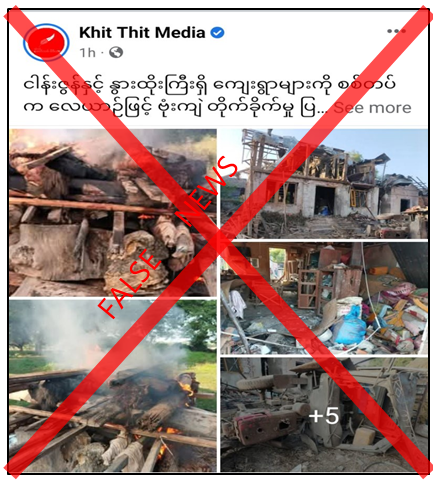 မန္တလေးတိုင်းဒေသကြီး၊ ငါန်းဇွန်မြို့နယ်နှင့် နွားထိုးကြီးမြို့နယ်ရှိ ကျေးရွာအချို့ကို ဒီဇင်ဘာ ၃၁ ရက်နေ့တွင် လေကြောင်းဖြင့် ဗုံးကြဲတိုက်ခိုက်မှုကြောင့် ပြည်သူ ၅ ဦးသေဆုံးပြီး နေအိမ်များပျက်စီးခဲ့သည်ဟု တရားမဝင်ပြည်ဖျက်မီဒီယာများက မဟုတ်မမှန် သတင်းတု၊ သတင်းအမှားများ ရေးသားဖြန့်ဝေလျက်ရှိကြောင်း တွေ့ရှိရသည်။