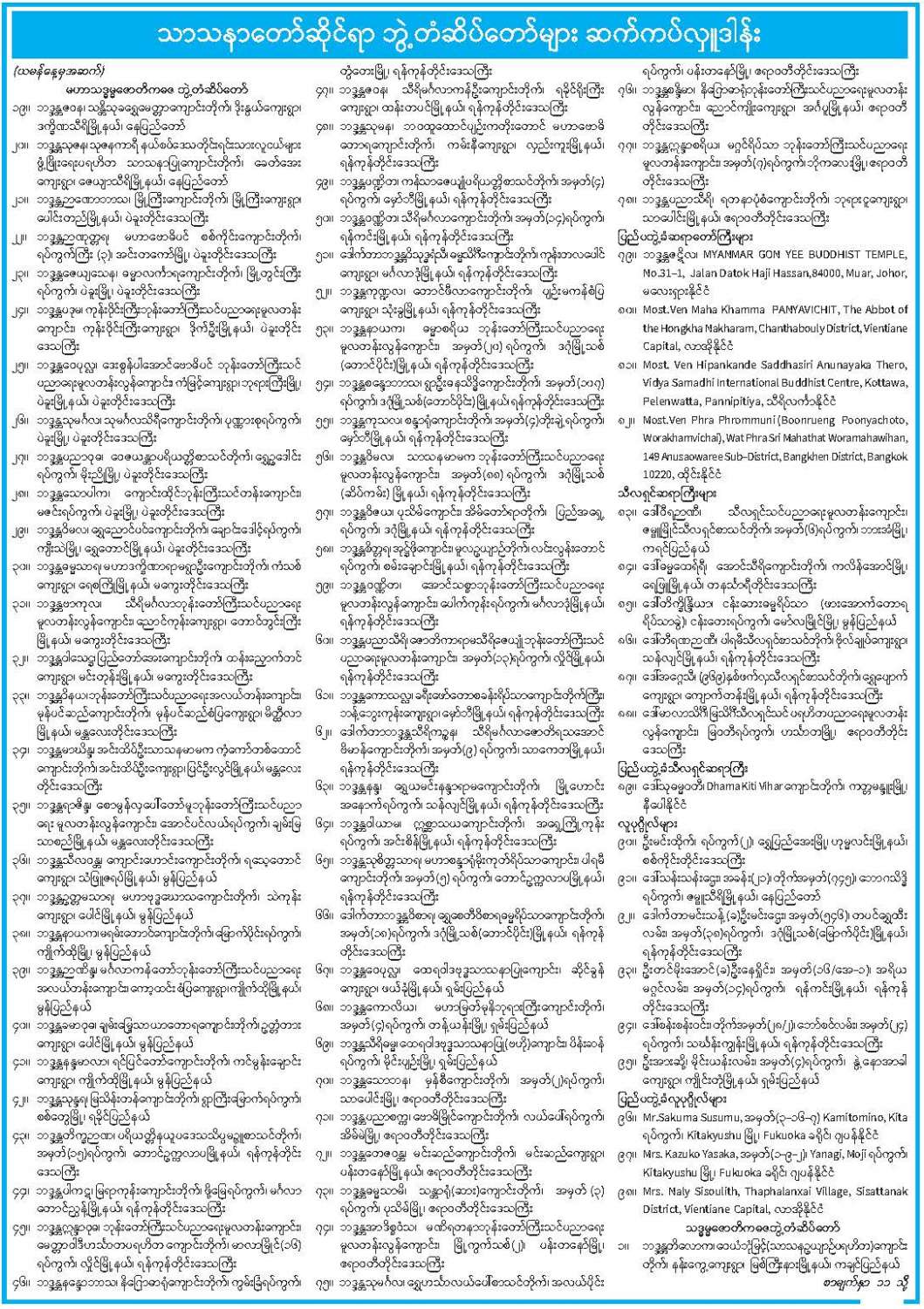သာသနာတော်ဆိုင်ရာ ဘွဲ့တံဆိပ်တော်များ ဆက်ကပ်လှူဒါန်း