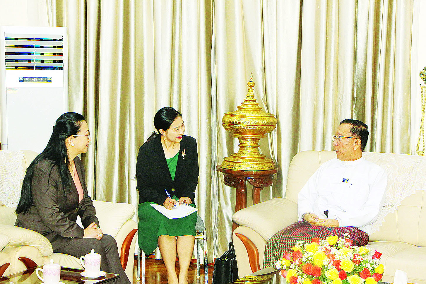 ဒုတိယဝန်ကြီးချုပ်နှင့် စီမံကိန်းနှင့်ဘဏ္ဍာရေးဝန်ကြီးဌာန ပြည်ထောင်စုဝန်ကြီး ဦးဝင်းရှိန်သည် မြန်မာနိုင်ငံဆိုင်ရာ တရုတ်နိုင်ငံသံအမတ်ကြီး Ms. Ma Jia အား ယမန်နေ့နံနက်ပိုင်းက နေပြည်တော်ရှိ စီမံကိန်းနှင့်ဘဏ္ဍာရေးဝန်ကြီးဌာန၌ လက်ခံတွေ့ဆုံသည်။