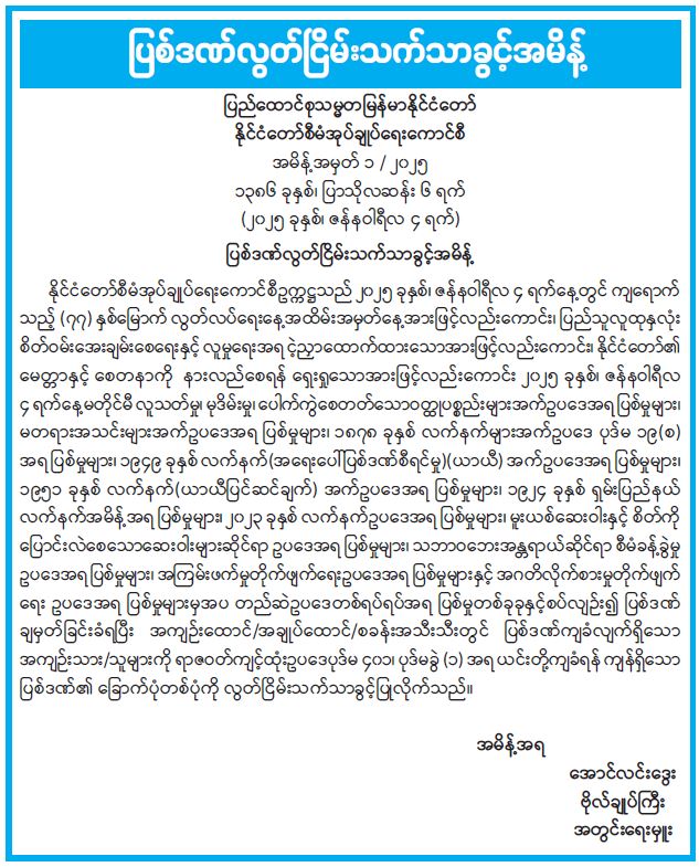 ဝန်ကြီးဌာန ကြေညာချက်များ