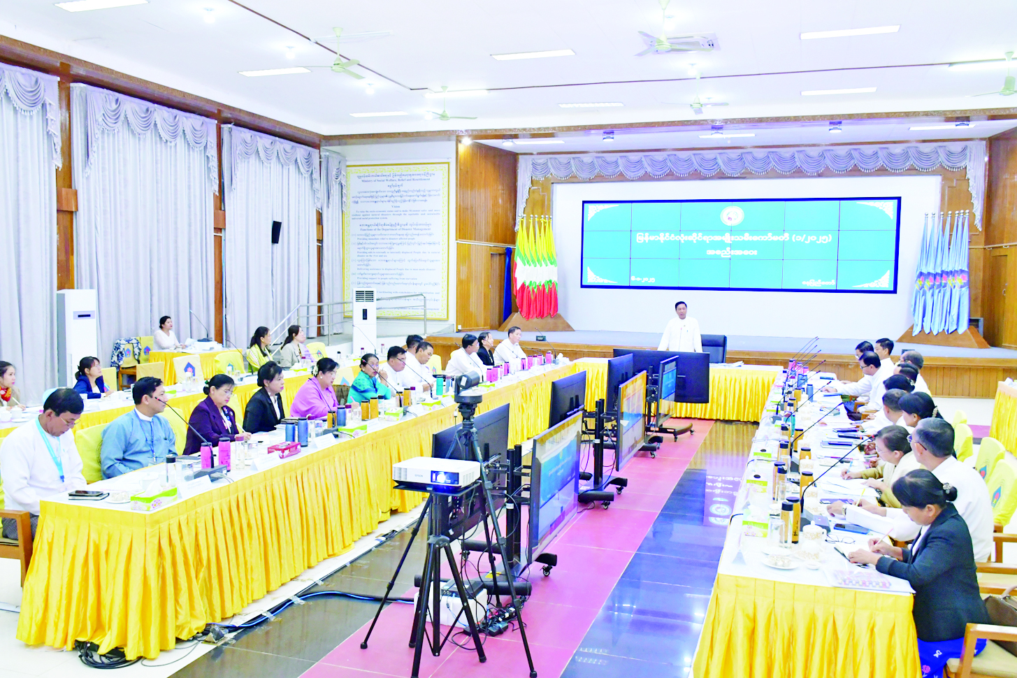 မြန်မာနိုင်ငံလုံးဆိုင်ရာ အမျိုးသမီးကော်မတီ (၁/၂၀၂၅) အစည်းအဝေးကို ယနေ့နံနက်ပိုင်းတွင် နေပြည်တော်ရှိ လူမှုဝန်ထမ်း၊ ကယ်ဆယ်ရေးနှင့်ပြန်လည်နေရာချထားရေးဝန်ကြီးဌာန စုပေါင်းအစည်းအဝေးခန်းမ၌ ကျင်းပရာ မြန်မာနိုင်ငံလုံးဆိုင်ရာ အမျိုးသမီးကော်မတီဥက္ကဋ္ဌ ပြည်ထောင်စုဝန်ကြီး ဒေါက်တာစိုးဝင်း၊ ကော်မတီအဖွဲ့ဝင် ဒုတိယဝန်ကြီးများ၊ မြန်မာနိုင်ငံအမျိုးသားလူ့အခွင့်အရေးကော်မရှင်အဖွဲ့ဝင်နှင့် အမျိုးသမီးအဖွဲ့များမှ တာဝန်ရှိသူများ တက်ရောက်ကြပြီး တိုင်းဒေသကြီးနှင့် ပြည်နယ်အမျိုးသမီးကော်မတီအတွင်းရေးမှူးများက အွန်လိုင်းဖြင့် တက်ရောက်ကြသည်။