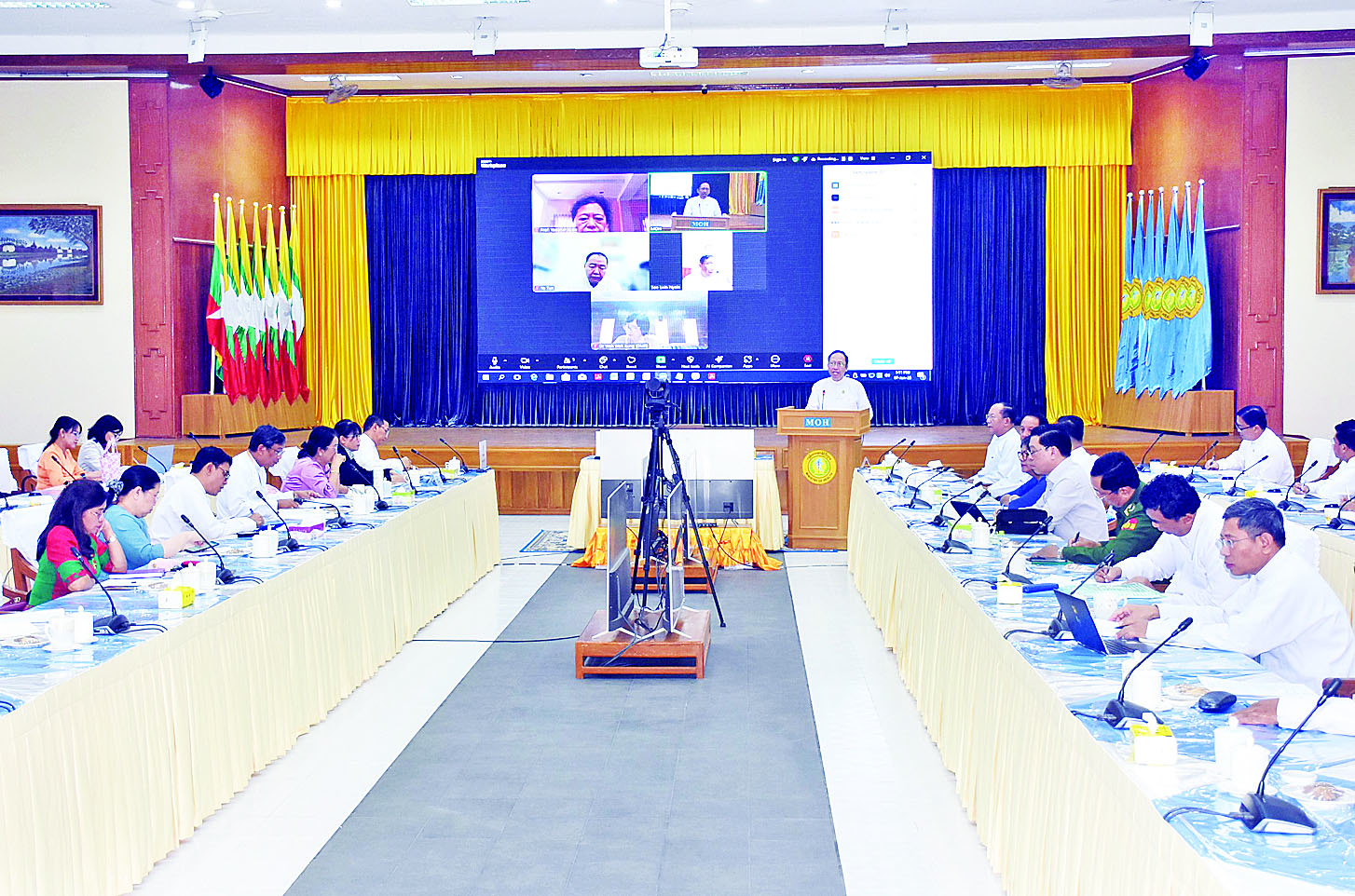 ယင်းနောက် တက်ရောက်လာကြသူများက နိုင်ငံတကာနှင့် ဒေသတွင်းရောဂါဖြစ်ပွားမှုအခြေအနေ၊ ရောဂါကာကွယ် ထိန်းချုပ်ကုသရေးလုပ်ငန်း ဆောင်ရွက်နေမှုနှင့် ရှေ့ဆက်ဆောင်ရွက်သွားမည့် လုပ်ငန်းများနှင့်ပတ်သက်၍ အကြံပြုတင်ပြကြပြီး ပြည်ထောင်စုဝန်ကြီးက နိဂုံးချုပ်အမှာစကား ပြောကြားခဲ့ကြောင်း သိရသည်။