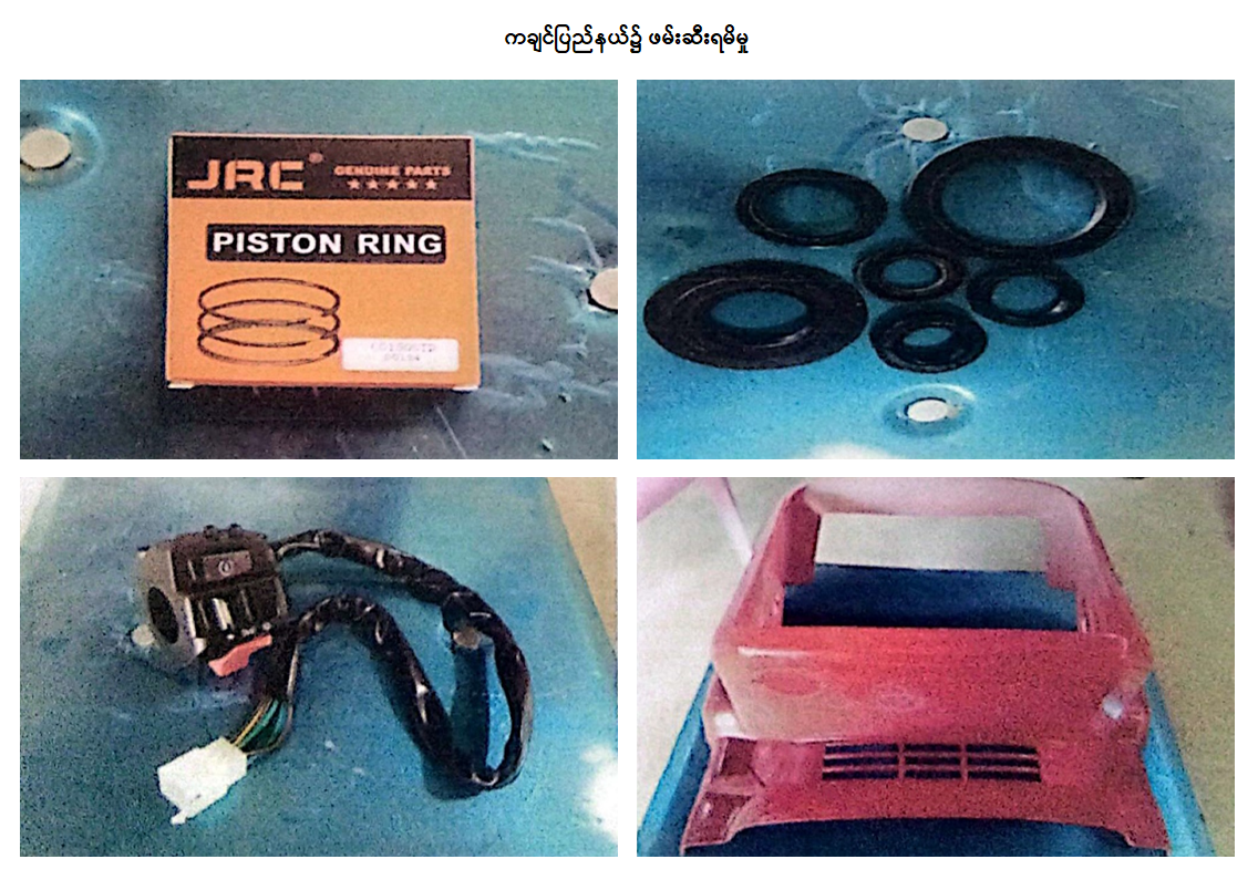 ၃။ ထို့အပြင် ဇန်နဝါရီလ ၇ ရက်တွင် ကချင်ပြည်နယ် တရားမဝင်ကုန်သွယ်မှုတိုက်ဖျက်ရေးအထူးအဖွဲ့၏ စီမံခန့်ခွဲမှုဖြင့် တာဝန်ကျပူးပေါင်းအဖွဲ့က စစ်ဆေးမှုများ ဆောင်ရွက်ခဲ့ရာ မြစ်ကြီးနားမြို့၊ ရန်ကြီးအောင်ရပ်ကွက်၊ အမှတ် (၃၁၆-B) ၌ တရားဝင်စာရွက်စာတမ်းအထောက်အထား တင်ပြနိုင်ခြင်းမရှိသည့် ဆိုင်ကယ်အပိုပစ္စည်း (၈၇) မျိုး စုစုပေါင်း (ခန့်မှန်းတန်ဖိုးငွေကျပ် ၂၃,၆၃၈,ဝ၅ဝ) ကို ဖမ်းဆီးရမိခဲ့ပြီး အကောက်ခွန်လုပ်ထုံးလုပ်နည်းများနှင့်အညီ အရေးယူဆောင်ရွက်လျက်ရှိပါသည်။