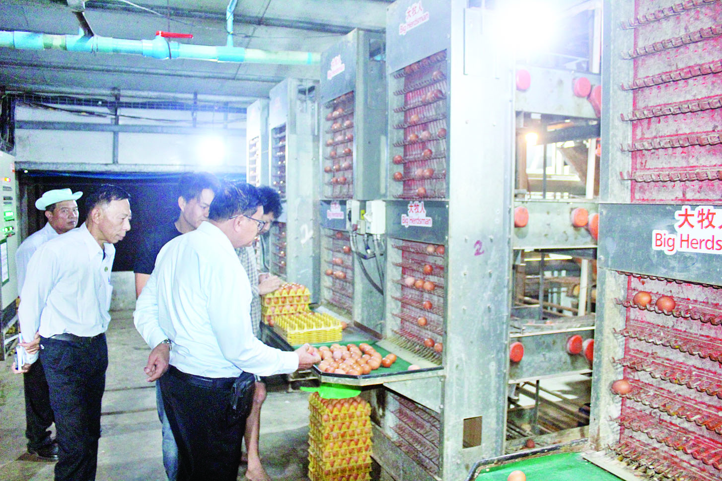 ထို့နောက် မွေးမြူရေးလုပ်ငန်းရှင် ဦးလီဟိုက်ချိန်၏ ဥစားကြက်မွေးမြူရေးခြံ ရှစ်ခြံတွင် ဥစားကြက်ကောင်ရေ တစ်သိန်းကို အအေးပေးအလုံပိတ်စနစ် အစာကျွေးမှုစနစ် (Evaporative Cooling System) ဖြင့် မွေးမြူထားရှိမှုနှင့် တစ်နှစ်လျှင် ကြက်ဥ ၂၉ သန်းကျော် ဖြန့်ဖြူးပေးနေမှုအခြေအနေများကိုလည်းကောင်း၊ မှော်ဘီမြို့နယ် ညောင်ကုန်းကျေးရွာ FeedMAS Livestock Co., Ltd. ၏ ဥစားကြက် မွေးမြူရေးခြံ (ဝါးနက်ချောင်း) တွင် အအေးပေး အလုံပိတ်စနစ် (Evaporative Cooling System)ဖြင့် LOHMANN BROWNY ဥစားကြက်ကောင်ရေ ၈၆၈၉၃ ကောင် မွေးမြူနေမှုနှင့် တစ်နှစ် လျှင် ကြက်ဥ ၁၂ ဒသမ ၆ သန်း ထုတ်လုပ်ဖြန့်ဖြူးပေးနေမှုကိုလည်းကောင်း လှည့်လည်ကြည့်ရှုစစ်ဆေးပြီး တာဝန်ရှိသူများအား လိုအပ်သည်များကို ဆွေးနွေး မှာကြားသည်။