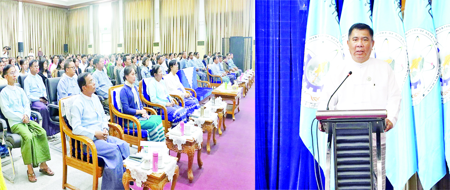 သိပ္ပံနှင့်နည်းပညာဝန်ကြီးဌာနရှိ အရာထမ်း၊ အမှုထမ်းများအား ဥပဒေအသိပညာ ဆင့်ပွားဖြန့်ဝေခြင်းအခမ်းအနားကို ယနေ့မွန်းလွဲပိုင်းတွင် သိပ္ပံနှင့်နည်းပညာဝန်ကြီးဌာန အစည်းအဝေးခန်းမ၌ကျင်းပရာ ပြည်ထောင်စုဝန်ကြီး ဒေါက်တာမျိုးသိန်းကျော်၊ အမြဲတမ်းအတွင်းဝန်နှင့် ညွှန်ကြားရေးမှူးချုပ်များ၊ အရာထမ်း၊ အမှုထမ်းများတက်ရောက်ကြသည်။