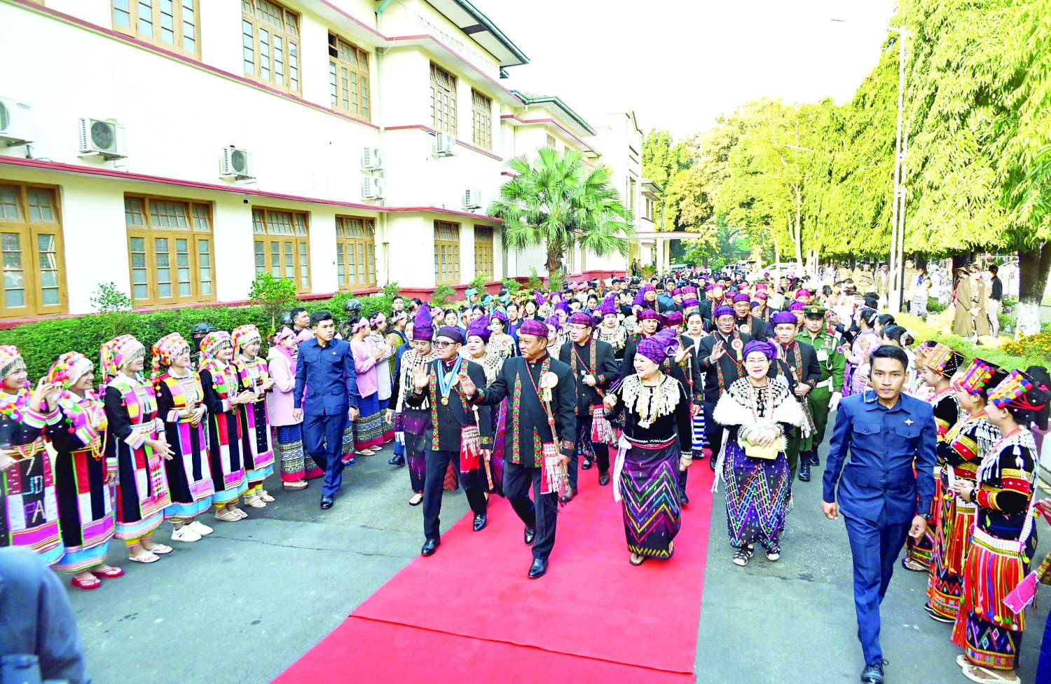 (၇၇)နှစ်မြောက် ကချင်ပြည်နယ်နေ့ အထိမ်းအမှတ် အခမ်းအနားကို ယနေ့နံနက် ၈ နာရီတွင် ကချင်ပြည်နယ် အစိုးရအဖွဲ့ရုံးဝင်းရှေ့ မြက်ခင်းပြင်၌ စည်ကားသိုက်မြိုက်စွာ ကျင်းပပြုလုပ်သည်။