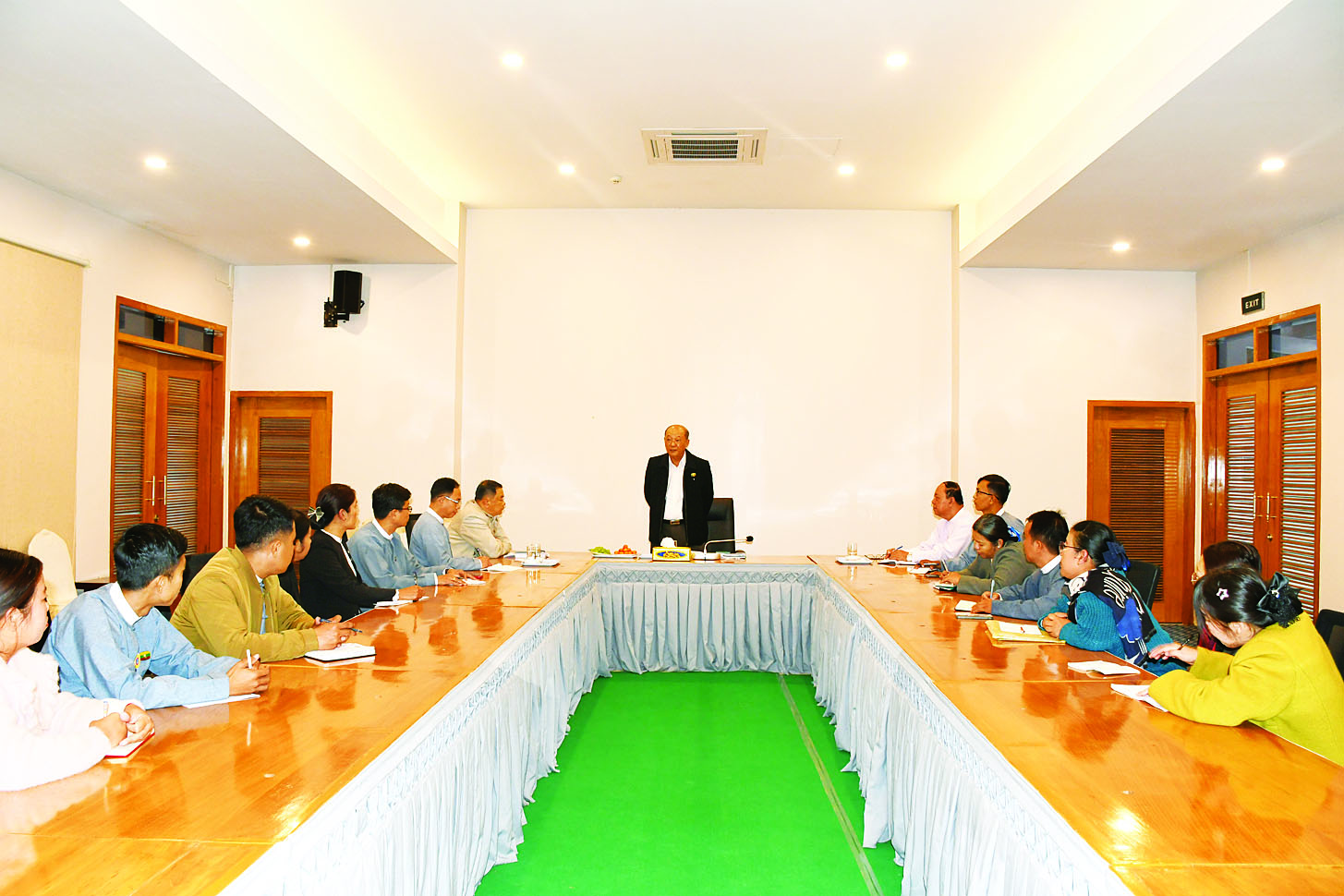 ယင်းနောက် ပြည်နယ်တိုင်းရင်းသားရေးရာဝန်ကြီးက အားပေးစကားပြောကြားပြီး ဝန်ထမ်းများက ဌာနအလိုက်လုပ်ငန်းဆောင်ရွက်မှုများနှင့် စပ်လျဉ်း၍ တွေ့ကြုံရသည့်အခက်အခဲနှင့် လိုအပ်ချက်များကို ဆွေးနွေးတင်ပြကြရာ တိုင်းရင်းသားစာပေနှင့် ယဉ်ကျေးမှုဦးစီးဌာန ညွှန်ကြားရေးမှူးချုပ်က ပြန်လည်ရှင်းလင်းဆွေးနွေးပြီး ပြည်ထောင်စုဝန်ကြီးက ပေါင်းစပ်ဖြည့်ဆည်းဆောင်ရွက်ပေးခဲ့ကြောင်း သိရသည်။