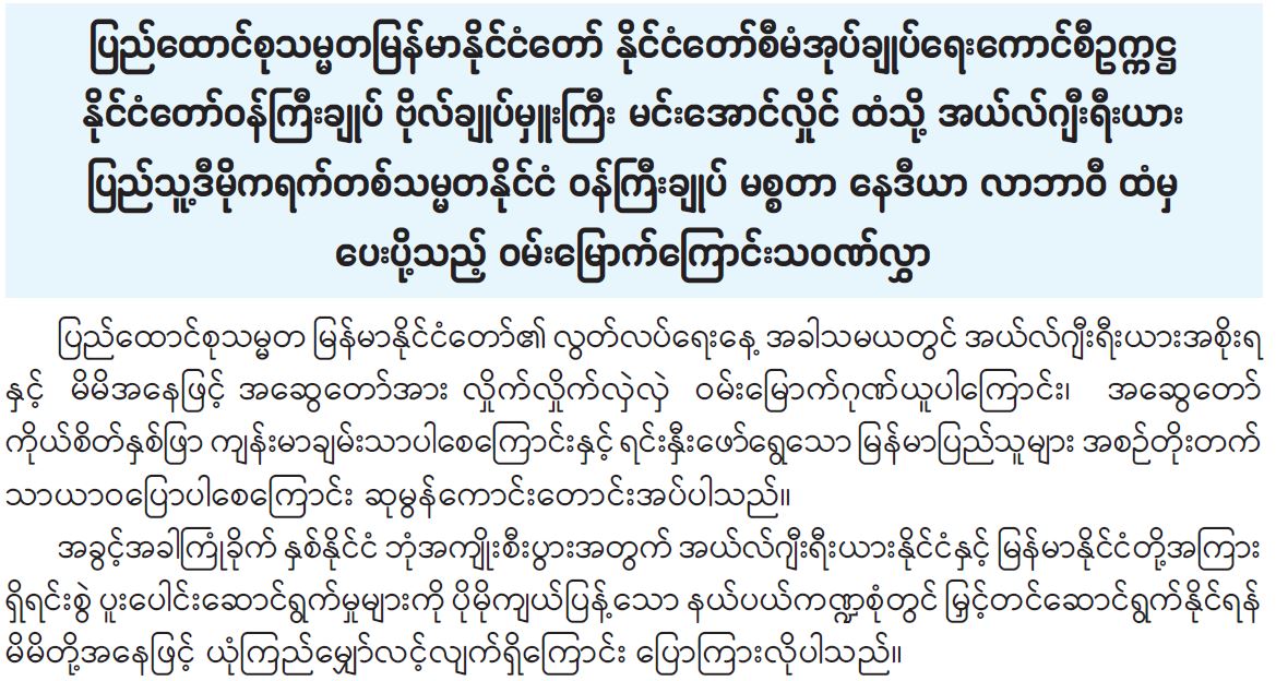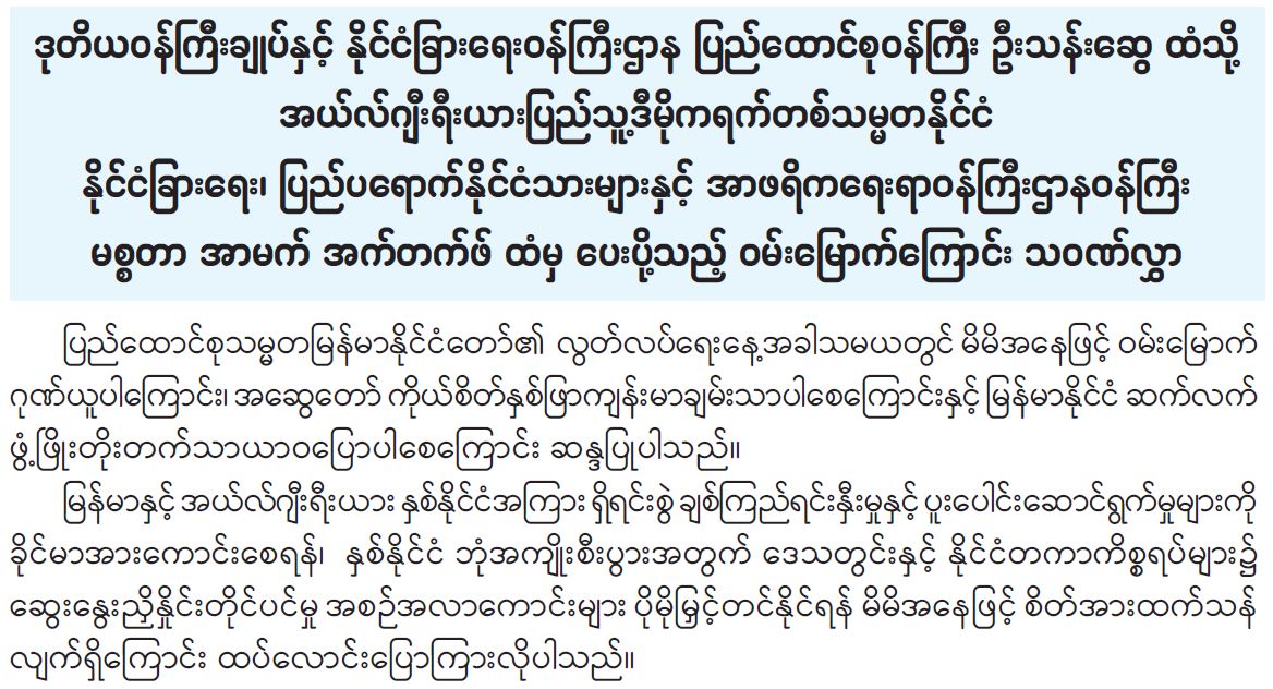 ၂၀၂၅ ခုနှစ် ဇန်နဝါရီလ ၄ ရက်နေ့၌ ကျရောက်ခဲ့သည့် ပြည်ထောင်စုသမ္မတမြန်မာနိုင်ငံတော်၏ (၇၇)နှစ်မြောက် လွတ်လပ်ရေးနေ့အခါသမယတွင် ကမ္ဘာ့နိုင်ငံအသီးသီးမှ နိုင်ငံအကြီးအကဲများက နိုင်ငံတော်စီမံအုပ်ချုပ်ရေးကောင်စီဥက္ကဋ္ဌ နိုင်ငံတော်ဝန်ကြီးချုပ် ဗိုလ်ချုပ်မှူးကြီး မင်းအောင်လှိုင်နှင့် ဒုတိယဝန်ကြီးချုပ်နှင့် နိုင်ငံခြားရေးဝန်ကြီးဌာန ပြည်ထောင်စုဝန်ကြီး ဦးသန်းဆွေတို့ထံ ဝမ်းမြောက်ကြောင်း သဝဏ်လွှာများ အသီးသီးပေးပို့ကြပါသည်။