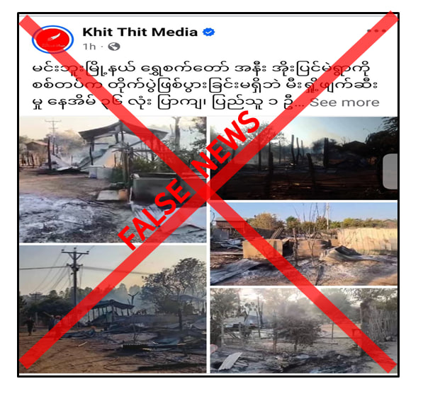 အဆိုပါသတင်းနှင့်ပတ်သက်၍ သက်ဆိုင်ရာနယ်မြေလုံခြုံရေးတာဝန်ရှိသူများ၏ ပြောကြားချက်များအရ အဆိုပါကျေးရွာများကို လုံခြုံရေးတပ်ဖွဲ့ဝင်များက မီးရှို့ဖျက်ဆီးခဲ့သည် ဆိုသည့်သတင်းမှာ မှန်ကန်မှုမရှိကြောင်း၊ အကြမ်းဖက်သမားများအနေဖြင့် ၎င်းတို့အလိုကျ လိုက်ပါဆောင်ရွက်ခြင်းမရှိသည့် ဒေသခံပြည်သူများနေထိုင်သည့် ကျေးရွာများအတွင်းသို့ လက်နက်ကြီး၊ ဒရုန်းများဖြင့် ပစ်ခတ်တိုက်ခိုက်ခြင်းများ၊ နေအိမ်များအား မီးရှို့ဖျက်ဆီးခြင်းများကို လုပ်ဆောင်လျက်ရှိကြောင်း၊ ယခုဖြစ်စဉ်တွင်လည်း အကြမ်းဖက်သမားများက အဆိုပါကျေးရွာအား မီးရှို့ဖျက်ဆီးသည်ကို အကြမ်းဖက်အားပေးပြည်ဖျက်မီဒီယာများမှ လုံခြုံရေးတပ်ဖွဲ့ဝင်များအပေါ် အပြစ်ပုံချလုပ်ကြံဖန်တီးရေးသားခြင်းဖြစ်ကြောင်း သတင်းရရှိသည်။