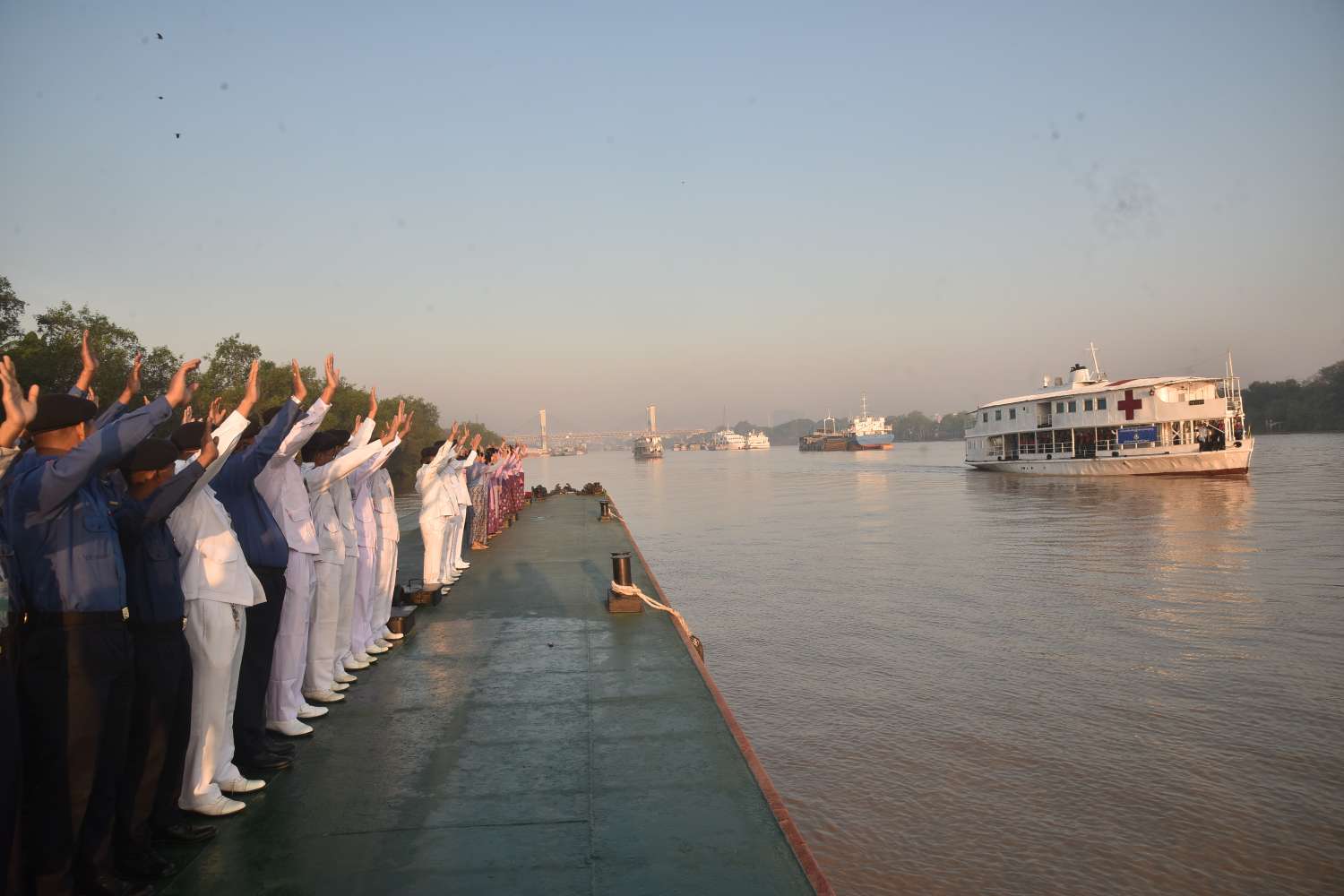 ဧရာဝတီတိုင်းဒေသကြီးအတွင်း ဧရာဝတီမြစ်ကြောင်းတစ်လျှောက်ရှိ မြစ်ဝကျွန်းပေါ်နေ ကျေးရွာများမှ ဒေသခံပြည်သူများအား ကျန်းမာရေးစောင့်ရှောက်မှုလုပ်ငန်းများ ဆောင်ရွက်ပေးရန်အတွက် တပ်မတော်နယ်လှည့်အထူးကုဆေးအဖွဲ့မှ ပါရဂူများ၊ ဆေးမှူးများနှင့် သူနာပြုများပါဝင်သည့် တပ်မတော်မြစ်တွင်းသွားဆေးရုံရေယာဉ် (ရွှေပုဇွန်) နှင့် မြစ်ရေယာဉ် (စကု) တို့သည် ယနေ့နံနက်ပိုင်းတွင် ရန်ကုန်မြို့၊ အမှတ် (၄) ရေတပ်ဗောတံတားမှလည်းကောင်း၊ ရန်ကုန်တိုင်းဒေသကြီး၊ ကိုကိုးကျွန်းမြို့နယ်၊ တနင်္သာရီတိုင်းဒေသကြီးအတွင်းရှိ ကမ်းရိုးတန်းတစ်လျှောက်မှ မြို့နယ်၊ ကျေးရွာများနှင့် ဧရာဝတီတိုင်းဒေသကြီး၊ ဟိုင်းကြီးကျွန်းမြို့နယ်အတွင်းရှိ ပတ်ဝန်းကျင်ကျေးရွာများမှ ဒေသခံပြည်သူများအား ကျန်းမာရေးစောင့်ရှောက်မှုလုပ်ငန်းများ ဆောင်ရွက်ပေးရန်အတွက် တပ်မတော်နယ်လှည့်အထူးကုဆေးအဖွဲ့မှ ပါရဂူများ၊ ဆေးမှူးများနှင့် သူနာပြုများပါဝင်သည့် တပ်မတော်ပင်လယ်သွားဆေးရုံရေယာဉ် (သံလွင်) သည် ယနေ့နေ့လယ်ပိုင်းတွင် ရန်ကုန်မြို့၊ အမှတ် (၂) ရေတပ်ဆိပ်ခံတံတား (သန်လျင်) မှလည်းကောင်း အသီးသီးထွက်ခွာကြရာ တပ်မတော် (ရေ) မှ အရာရှိကြီးများနှင့် အရာရှိ၊ စစ်သည်၊ မိသားစုများက ပို့ဆောင်နှုတ်ဆက်ကြသည်။
