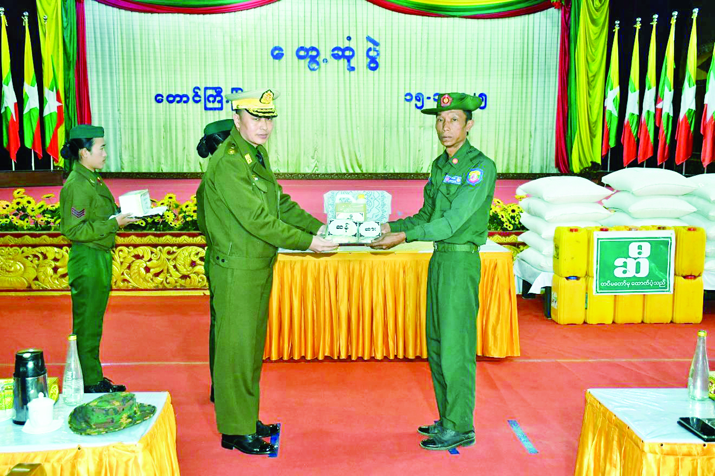 ထိုသို့တွေ့ဆုံရာတွင် တိုင်းမှူးကအမှာစကားပြောကြားပြီး ပြည်သူ့စစ် (ဌာနေ) တပ်ဖွဲ့ဝင်များ၏ တင်ပြမှုများအပေါ် လိုအပ်သည်များ ညှိနှိုင်းဆောင်ရွက်ပေးကာ ဆန်၊ ဆီ၊ စားသောက်ဖွယ်ရာများနှင့် ချီးမြှင့်ငွေများပေးအပ်ခဲ့ကြောင်း သိရသည်။