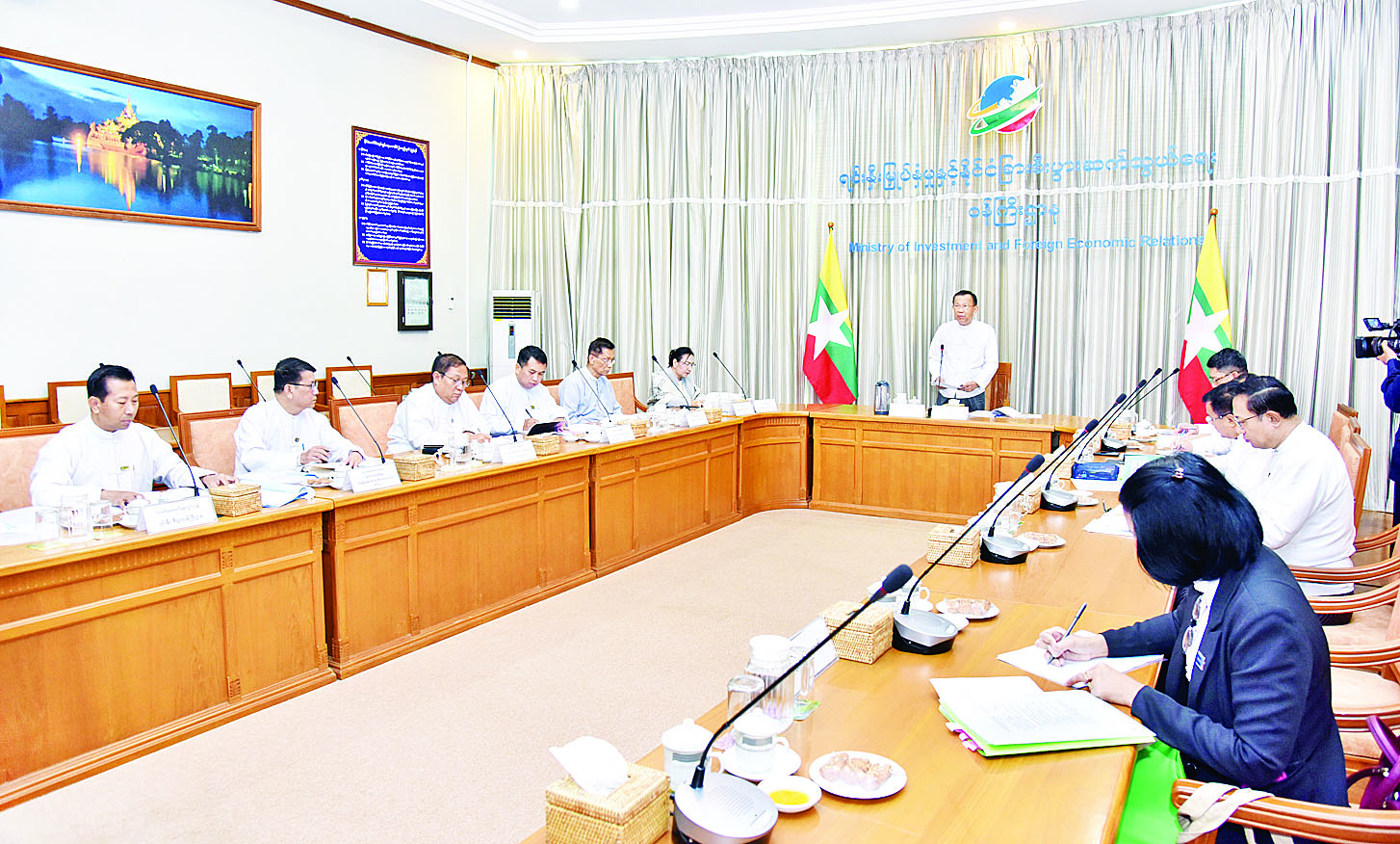 အစည်းအဝေးသို့ လုပ်ငန်းကော်မတီဥက္ကဋ္ဌ ရင်းနှီးမြှုပ်နှံမှုနှင့် နိုင်ငံခြားစီးပွားဆက်သွယ်ရေးဝန်ကြီးဌာန ပြည်ထောင်စုဝန်ကြီး ဒေါက်တာကံဇော်၊ လုပ်ငန်းကော်မတီဝင်များ ဖြစ်ကြသည့် ဒုတိယဝန်ကြီးများ၊ မြန်မာနိုင်ငံတော်ဗဟိုဘဏ် ဒုတိယဥက္ကဋ္ဌ၊ ဝန်ကြီးဌာနများမှ ဌာနဆိုင်ရာအကြီးအကဲများနှင့် တာဝန်ရှိသူများ တက်ရောက်ကြသည်။