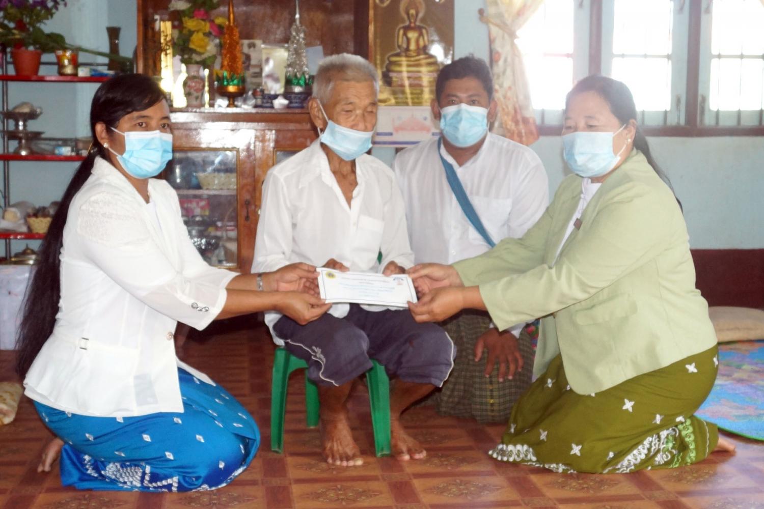ရှမ်းပြည်နယ်(အရှေ့ပိုင်း)မိုင်းဆတ်မြို့၌ COVID-19 စီးပွားရေးကုစားမှုအစီအစဉ်အရ အသက်(၈၀) နှစ်မှ (၈၅) နှစ်ကြားရှိ ဘိုးဘွားများအား ထောက်ပံ့ငွေပေးအပ်ခြင်းကို ယမန်နေ့မွန်းလွဲ(၂)နာရီက အိမ်တိုင်ရာ ရောက် သွားရောက် ထောက်ပံ့ပေးအပ်ခဲ့ကြောင်းသိရသည်။