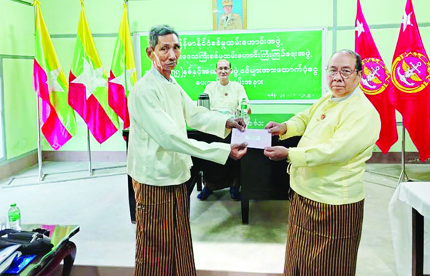မြန်မာနိုင်ငံစစ်မှုထမ်းဟောင်းအဖွဲ့၊ တိုင်းဒေသကြီး/ပြည်နယ် စစ်မှုထမ်းဟောင်းကြီးကြပ်ရေးအဖွဲ့များသည် သက်ဆိုင်ရာနယ်မြေအလိုက် အသက် ၇၅ နှစ် နှင့်အထက် စစ်မှုထမ်းဟောင်းအဖွဲ့ဝင်များကို အခမ်းအနားဖြင့် ချီးမြှင့်ငွေများ ပေးအပ်ခဲ့ကြောင်း သိရသည်။