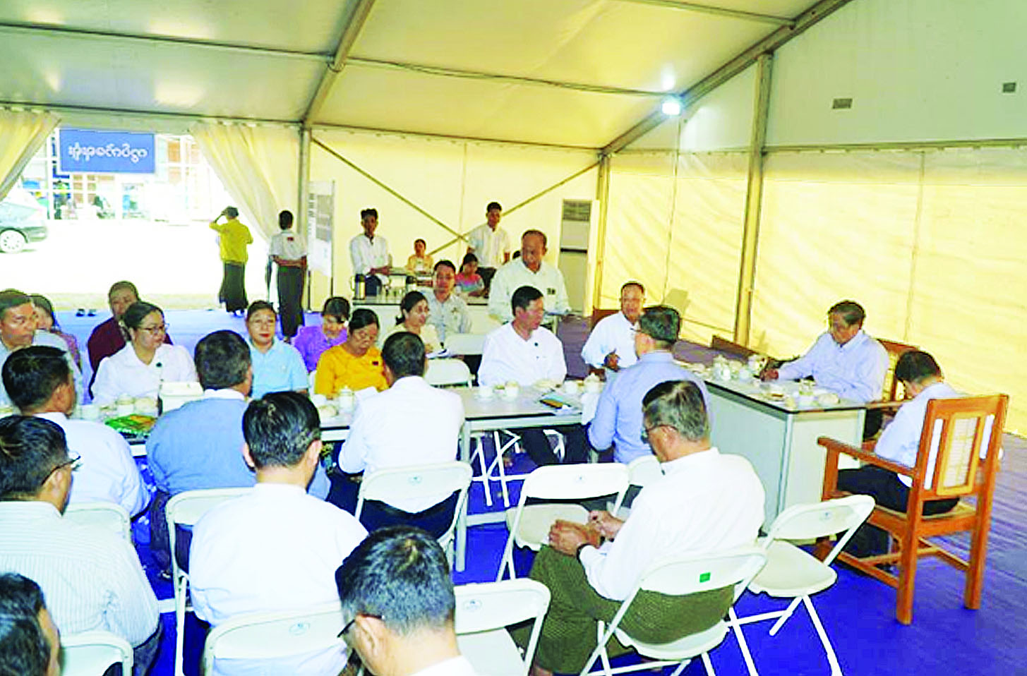ပြည်ထောင်စုအဆင့် MSME ထုတ်ကုန်ပြပွဲနှင့်ပြိုင်ပွဲ ကျင်းပရေးဦးစီးကော်မတီဥက္ကဋ္ဌ စက်မှုဝန်ကြီးဌာန ပြည်ထောင်စုဝန်ကြီး ဒေါက်တာချာလီသန်းသည် ယနေ့မွန်းလွဲပိုင်းတွင် ပြပွဲနှင့်ပြိုင်ပွဲကျင်းပမည့် တပေါင်းကွင်းရှိ ယာယီရှင်းလင်းဆောင်၌ ဆပ်ကော်မတီအသီးသီးမှ ဥက္ကဋ္ဌများနှင့် တာဝန်ရှိသူများကို တွေ့ဆုံသည်။