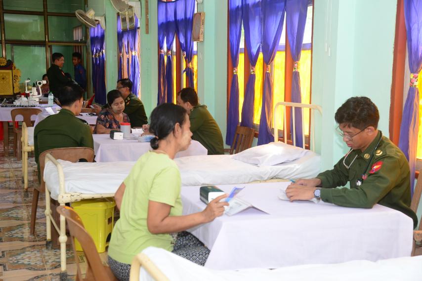 ထိုသို့ ဆောင်ရွက်ပေးရာတွင် ဆေးကုသမှုဆိုင်ရာရောဂါ ၈၉ ဦး၊ ခွဲစိတ်ရောဂါ ၁၁ ဦး၊ သားဖွား/မီးယပ်ရောဂါ ၁၂ ဦး၊ ကလေးရောဂါ ၁၁ ဦး၊ အရိုးရောဂါ ၂၁ ဦး၊ နား၊ နှာခေါင်း၊ လည်ချောင်းရောဂါ ၃ ဦး၊ မျက်စိရောဂါ ၁၅ ဦးနှင့် သွားနှင့်ခံတွင်းရောဂါ ၁၅ ဦးတို့ကို လိုအပ်သည့် ဆေးဝါးကုသမှုများ ဆောင်ရွက်ပေးသည်။ ၎င်းတို့အနက် အထွေထွေခွဲစိတ်လူနာ ၁ ဦး၊ မျက်စိခွဲစိတ်လူနာ ၅ ဦး၊ ဓာတ်မှန်ရိုက်လူနာ ၁၅ ဦး၊ အာထရာဆောင်းဖြင့် စမ်းသပ်စစ်ဆေးလူနာ ၁၄ ဦး၊ ECG စက်ဖြင့် နှလုံးစမ်းသပ်လူနာ ၂၉ ဦးနှင့် ဓာတ်ခွဲစမ်းသပ်လူနာ ၂၅ ဦးတို့ကို ရောဂါရှာဖွေစမ်းသပ်ကုသပေးခြင်းများ ဆောင်ရွက်ပေးပြီး ဆေးရုံတက်ရောက်ကုသရန် လိုအပ်သည့်လူနာ ၃ ဦးတို့ကို နီးစပ်ရာ တပ်မတော်ဆေးရုံများသို့ တက်ရောက်ကုသနိုင်ရေး စီစဉ်ဆောင်ရွက်ပေးသည်။
