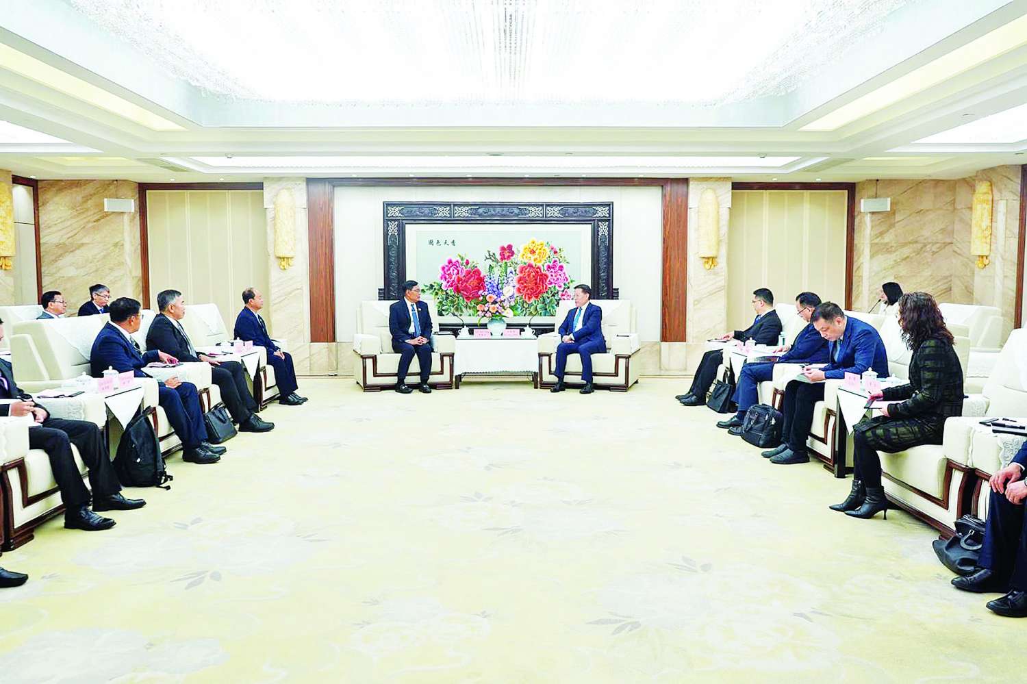 တရုတ်ပြည်သူ့သမ္မတနိုင်ငံ ချုံချင့်မြို့သို့ ရောက်ရှိနေသော ဆောက်လုပ်ရေးဝန်ကြီးဌာန ပြည်ထောင်စုဝန်ကြီး ဦးမျိုးသန့် ဦးဆောင်သော မြန်မာကိုယ်စားလှယ်အဖွဲ့သည် ဇန်နဝါရီ ၂၁ ရက်တွင် ချုံချင့်မြူနီစီပယ်အစိုးရ ဒုတိယမြို့တော်ဝန်နှင့် တာဝန်ရှိသူများအား တွေ့ဆုံခဲ့သည်။