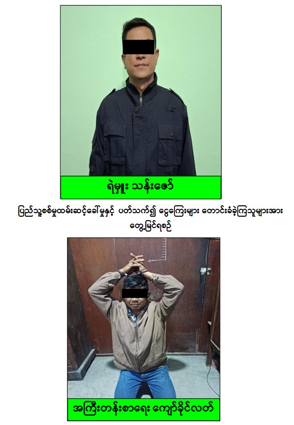 သို့ဖြစ်ပါ၍ တိုင်းဒေသကြီးနှင့်ပြည်နယ်အသီးသီးရှိ ပြည်သူ့စစ်မှုထမ်းဆင့်ခေါ်ရေးအဖွဲ့များအနေဖြင့် ပြည်သူ့စစ်မှုထမ်းများအားဆင့်ခေါ်ရာတွင် သတ်မှတ်ပြဋ္ဌာန်းထားသည့် ဥပဒေသတ်မှတ်ချက်များအတိုင်းသာ ဆင့်ခေါ်သွားရန်နှင့် ငွေကြေးများတောင်းခံခြင်း၊ လူစားထိုးလဲလှယ်ခြင်းများမရှိစေရေး တာဝန်ရှိသူများမှ အသိပညာပေးမှုများကို ဆက်လက်ဆောင်ရွက်လျက်ရှိကြောင်း၊ ပြည်သူများအနေဖြင့်လည်း ပြည်သူ့စစ်မှုထမ်းဆင့်ခေါ်မှုနှင့်ပတ်သက်၍ ဥပဒေနှင့်အညီဆင့်ခေါ်မှုမရှိပါက သက်ဆိုင်ရာတာဝန်ရှိသူများထံသို့ ဆက်သွယ်သတင်းပေးပို့ခြင်းဖြင့် ပူးပေါင်းဆောင်ရွက်ပေးနိုင်ပါရန် အသိပေးသတင်းထုတ်ပြန်အပ်ပါသည်။