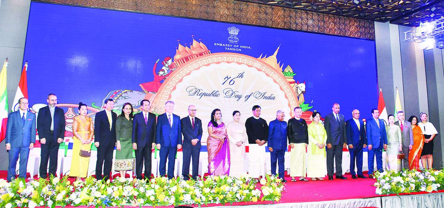 အိန္ဒိယသမ္မတနိုင်ငံ၏ (၇၆) နှစ်မြောက် အမျိုးသားနေ့အထိမ်းအမှတ် ဧည့်ခံပွဲအခမ်းအနားကို ယနေ့ညပိုင်းတွင် ရန်ကုန်မြို့ မင်္ဂလာတောင်ညွန့်မြို့နယ်ရှိ Wydham Grand Hotel ၌ ကျင်းပရာ နိုင်ငံတော်စီမံအုပ်ချုပ်ရေးကောင်စီအဖွဲ့ဝင် ဒုတိယဝန်ကြီးချုပ်နှင့် နိုင်ငံတော်ဝန်ကြီးချုပ်ရုံး ပြည်ထောင်စုဝန်ကြီး ဗိုလ်ချုပ်ကြီး တင်အောင်စန်းနှင့် ဇနီးတို့ တက်ရောက်ကြသည်။