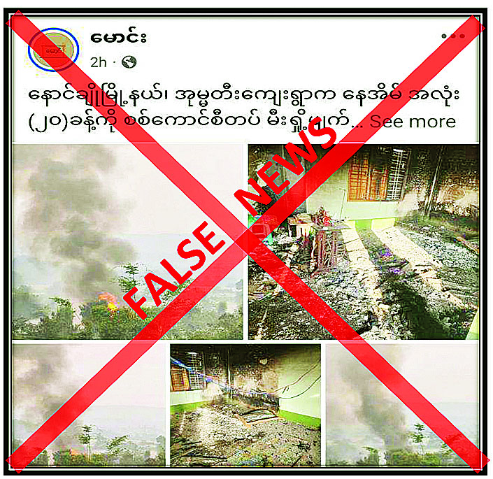 ရှမ်းပြည်နယ် (မြောက်ပိုင်း) နောင်ချိုမြို့နယ် အုမ္မတီးကျေးရွာရှိ ဒေသခံများ၏ နေအိမ် ၂၀ ခန့်ကို လုံခြုံရေးတပ်ဖွဲ့ဝင်များက မီးရှို့ဖျက်ဆီးသွားကြောင်း တရားမဝင်ပြည်ဖျက်မီဒီယာများက သတင်းအမှားများ မဟုတ်မမှန်ရေးသားဖြန့်ဝေလျက်ရှိကြောင်း တွေ့ရှိရသည်။