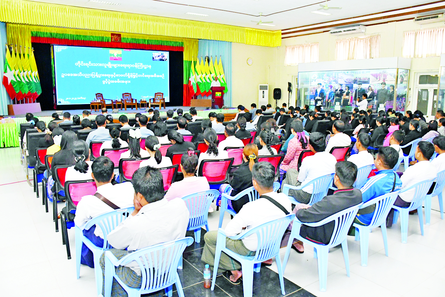 တိုင်းရင်းသားလူမျိုးများရေးရာဝန်ကြီးဌာန ဥပဒေအသိပညာပြန့်ပွားရေးနှင့် စာဖတ်ရှိန်မြှင့်တင်ရေးအခမ်းအနားကို အဆိုပါဝန်ကြီးဌာနရှိ အစည်းအဝေးခန်းမ၌ကျင်းပရာ ပြည်ထောင်စုဝန်ကြီး Jeng Phang နော်တောင်၊ ဒုတိယဝန်ကြီး ဦးဇော်အေးမောင်၊ အမြဲတမ်းအတွင်းဝန်၊ ဌာနဆိုင်ရာ တာဝန်ရှိသူများ၊ အရာထမ်း၊ အမှုထမ်းများတက်ရောက်ကြပြီး တိုင်းဒေသကြီးနှင့်ပြည်နယ် ညွှန်ကြားရေးမှူးရုံးများမှ အရာထမ်း၊ အမှုထမ်းများက အွန်လိုင်းဖြင့်တက်ရောက်ကြသည်။