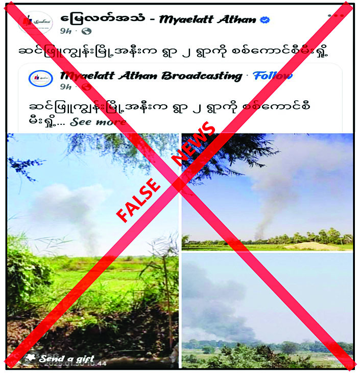 အဆိုပါသတင်းနှင့် ပတ်သက်ပြီး သက်ဆိုင်ရာလုံခြုံရေးတာဝန်ရှိသူတစ်ဦးထံ ဆက်သွယ်မေးမြန်းချက်အရ လုံခြုံရေးတပ်ဖွဲ့ဝင်များက နေအိမ်များကို မီးရှို့ဖျက်ဆီးခဲ့သည်ဆိုသည့်သတင်းမှာ သတင်းအမှားသာဖြစ်ကြောင်းသိရှိရပြီး အကြမ်းဖက်သမားများအနေဖြင့် နယ်မြေတည်ငြိမ်အေးချမ်းမှုကို မလိုလားဘဲငြိမ်းချမ်းစွာ နေထိုင်လျက်ရှိသော ပြည်သူလူထုအား ငွေကြေးကောက်ခံခြင်း၊ လူသစ်စုဆောင်းခြင်းနှင့် အနိုင်ကျင့်ခြိမ်းခြောက်မှုများအား ဥပဒေမဲ့လုပ်ဆောင်လျက်ရှိပြီး ၎င်းတို့အပေါ် ထောက်ခံအားပေးမှုမရှိသည့် ကျေးရွာများအား မီးရှို့ဖျက်ဆီးခြင်းများ လုပ်ဆောင်လျက်ရှိကြောင်း၊ လုံခြုံရေးတပ်ဖွဲ့ဝင်များအနေဖြင့် ပြည်သူများ ငြိမ်းချမ်းစွာနေထိုင်နိုင်ရေးအတွက် နယ်မြေလုံခြုံရေးလုပ်ငန်းများ ဆောင်ရွက်လျက်ရှိသည်ကို တရားမဝင်ပြည်ဖျက်မီဒီယာများက လုံခြုံရေးတပ်ဖွဲ့ဝင်များအပေါ် ပြည်သူများအထင်အမြင်လွဲမှားစေရန်ရည်ရွယ်၍ ယခုကဲ့သို့ အခြေအမြစ်မရှိသည့် ဓာတ်ပုံများကို အသုံးပြု၍ မဟုတ်မမှန် လုပ်ကြံရေးသားဖြန့်ဝေနေခြင်းဖြစ်ကြောင်း သတင်းရရှိသည်။