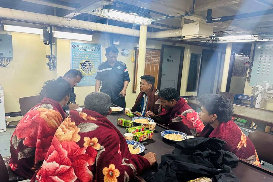 ရခိုင်ပြည်နယ်၊ ဂွမြို့နယ်ရှိ မြန်မာ့ပင်လယ်ပြင်အတွင်း လုံခြုံရေးဆောင်ရွက်နေသည့် တပ်မတော် (ရေ) မှ တပ်ဖွဲ့ဝင်များသည် ဂွမြို့၏အနောက်တောင်ဘက်ရေမိုင် ၁၈.၅ မိုင်အကွာ၌ ရွှေကြယ်လင်း ၁ အမည်ရှိ ကုန်တင်လှေတစ်စီးသည် လှိုင်းပုတ်၍ လှေဝမ်းပျဉ်ချပ်များပြုတ်ထွက်ပြီး ရေဝင်နစ်မြုပ်နေကြောင်း ဆက်သွယ်ရေးလေလှိုင်းမှသတင်းရရှိ၍ ယနေ့နံနက် ၁ နာရီ ၂၅ မိနစ်တွင် ရှာဖွေကယ်ဆယ်ရေးလုပ်ငန်းများ သွားရောက်ဆောင်ရွက်ရာ ၅ နာရီ ၄၅ မိနစ်ခန့်တွင် ရေဝင်နစ်မြုပ်နေသည့် ကုန်တင်လှေအနီးသို့ရောက်ရှိခဲ့ပြီး လှေပေါ်တွင်လိုက်ပါလာသော လှေသား ၅ ဦးအား ရေယာဉ်ပေါ်သို့ ကယ်ဆယ်တင်ဆောင်ကာ လိုအပ်သည့် ကျန်းမာရေးစစ်ဆေးပေးခြင်းများ ဆောင်ရွက်ပေးပြီး အဝတ်အထည်နှင့် စားသောက်ဖွယ်ရာများပေးအပ်၍ လှေသားများအား သက်ဆိုင်ရာသို့ စနစ်တကျလွှဲပြောင်းပေးအပ်သွားမည်ဖြစ်ကြောင်း သတင်းရရှိသည်။