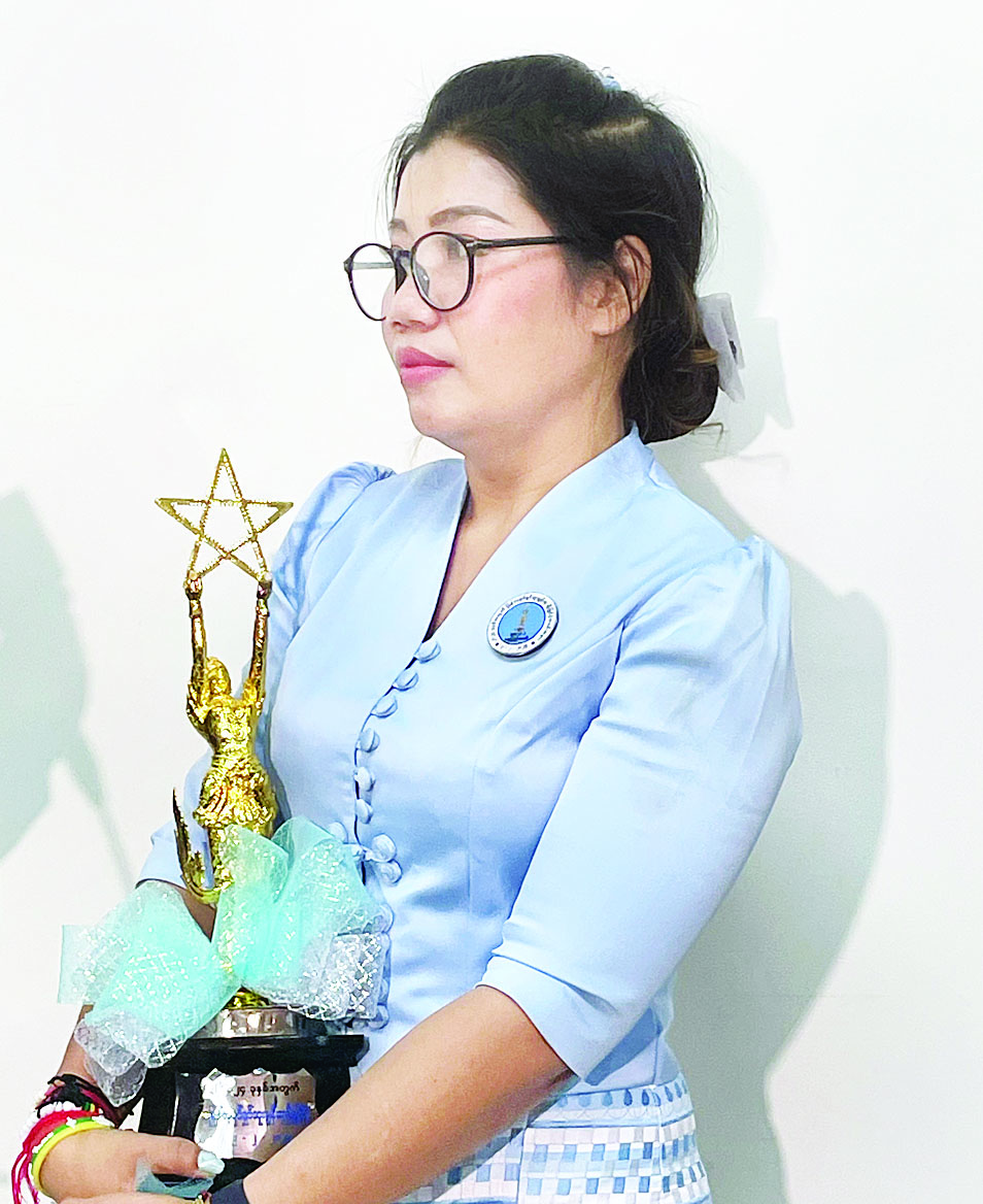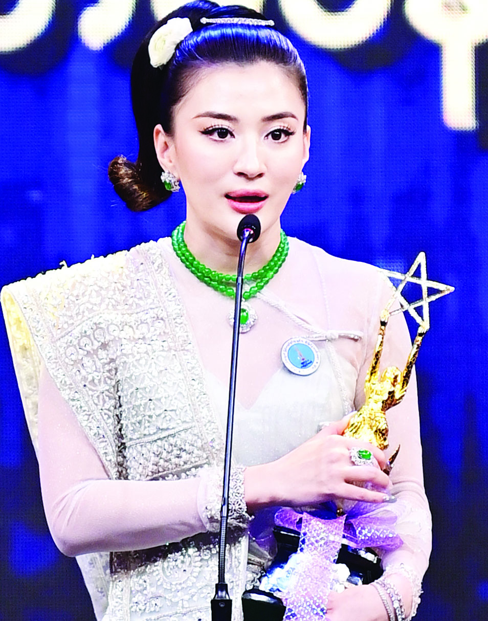 ဒီလိုဆုရရှိမယ်လို့ မမျှော်လင့်ခဲ့ပါဘူး။ အခုလိုနိုင်ငံတော်က ချီးမြှင့်တဲ့အတွက် ဝမ်းသာမိပါတယ်။ အခုရရှိတဲ့ တစ်သက်တာဆုဟာ အင်မတန်အဓိပ္ပာယ်ပြည့်ဝလှပါတယ်။ ကိုယ်တိုင်လည်း ဂုဏ်ယူမိပါတယ်။ ကျွန်မတို့ဘဝမှာ အနုပညာကို ချစ်မြတ်နိုးစွာနဲ့ နှစ်ပေါင်းများစွာ ဆောင်ရွက်ခဲ့တာပါ။ ကျွန်မချစ်တဲ့ ပရိသတ်ကြီးကို အသက်နဲ့ခန္ဓာတည်မြဲနေသရွေ့အနုပညာနဲ့ ကျေးဇူးဆပ်သွားပါမယ်လို့ ပြောချင်ပါတယ်။ ပရိသတ်ကြီးလည်း ထပ်တူထပ်မျှ ဝမ်းသာကြမယ်လို့ မျှော်လင့်ပါတယ်။ အားလုံးကို ကျေးဇူးတင်ရှိပါတယ်။