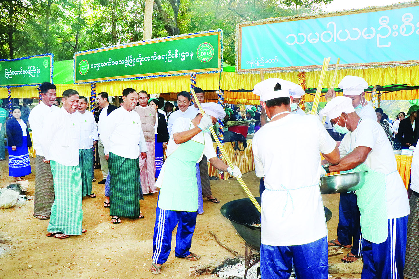 (၇၈)နှစ်မြောက် ပြည်ထောင်စုနေ့ကို ဂုဏ်ပြုသောအားဖြင့် သမဝါယမနှင့် ကျေးလက်ဖွံ့ဖြိုးရေးဝန်ကြီးဌာန ဝန်ထမ်းမိသားစုများ၏ စတုတ္ထအကြိမ် မြန်မာ့ရိုးရာထမနဲထိုးပြိုင်ပွဲကို ယနေ့နံနက်ပိုင်းတွင် အဆိုပါဝန်ကြီးဌာန၌ကျင်းပရာ ပြည်ထောင်စုဝန်ကြီး ဦးလှမိုး၊ ဒုတိယဝန်ကြီး ဦးမြင့်စိုးနှင့် တာဝန်ရှိသူများ၊ ပြိုင်ပွဲဝင်အသင်းများနှင့် အရာထမ်းအမှုထမ်းများ ပျော်ရွှင်စွာပါဝင်ဆင်နွှဲကြသည်။