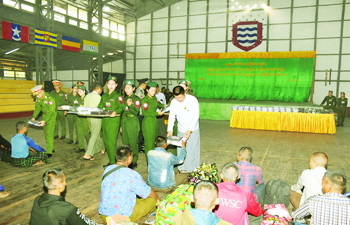 ဦးစွာ ပြည်နယ်ဝန်ကြီးချုပ်နှင့် တိုင်းမှူးတို့က ပြည်သူ့စစ်မှုထမ်း သင်တန်းအမှတ်စဉ် (၁၀) သို့ တက်ရောက်မည့် နိုင်ငံ့သားကောင်းရတနာများအတွက် အဝတ်အထည်နှင့် အသုံးအဆောင်ပစ္စည်းများ ပေးအပ်သည်။ ထို့နောက် ပြည်နယ်ဝန်ကြီးချုပ်၊ တိုင်းမှူးနှင့်တာဝန်ရှိသူများက နိုင်ငံ့သားကောင်း ရတနာများအား လိုက်လံနှုတ်ဆက်အားပေးစကား ပြောကြားပြီး လိုအပ်သည်များ ပေါင်းစပ်ညှိနှိုင်းဆောင်ရွက်ပေးသည်။