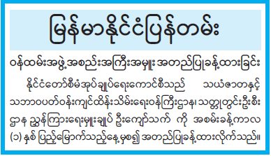 ဝန်ကြီးဌာန ကြေညာချက်များ