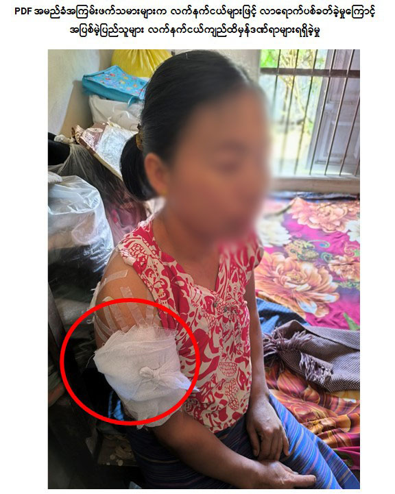 စစ်ကိုင်းတိုင်းဒေသကြီး၊ ရွှေဘိုမြို့နယ်၊ ခွန်တောင်းကြီးကျေးရွာအနီး လယ်လုပ်ငန်းဆောင်ရွက်နေသည့် ဒေသခံပြည်သူများအား PDF အမည်ခံ အကြမ်းဖက်သမားများက လက်နက်ငယ်များဖြင့် အကြောင်းမဲ့လာရောက်ပစ်ခတ်ခဲ့မှုကြောင့် အပြစ်မဲ့အရပ်သားပြည်သူအမျိုးသမီး ၃ ဦးလက်နက်ငယ်ကျည်ထိမှန်ဒဏ်ရာများ ရရှိခဲ့ကြောင်း သိရှိရသည်။