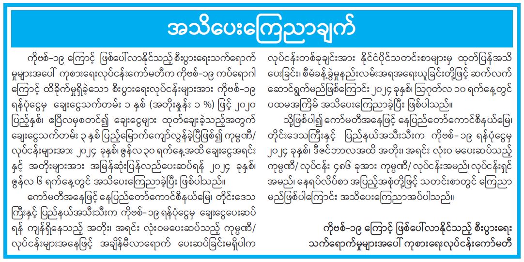 ဦးစီးဌာနနှင့် လုပ်ငန်းများ၏ ကြေညာချက်များ