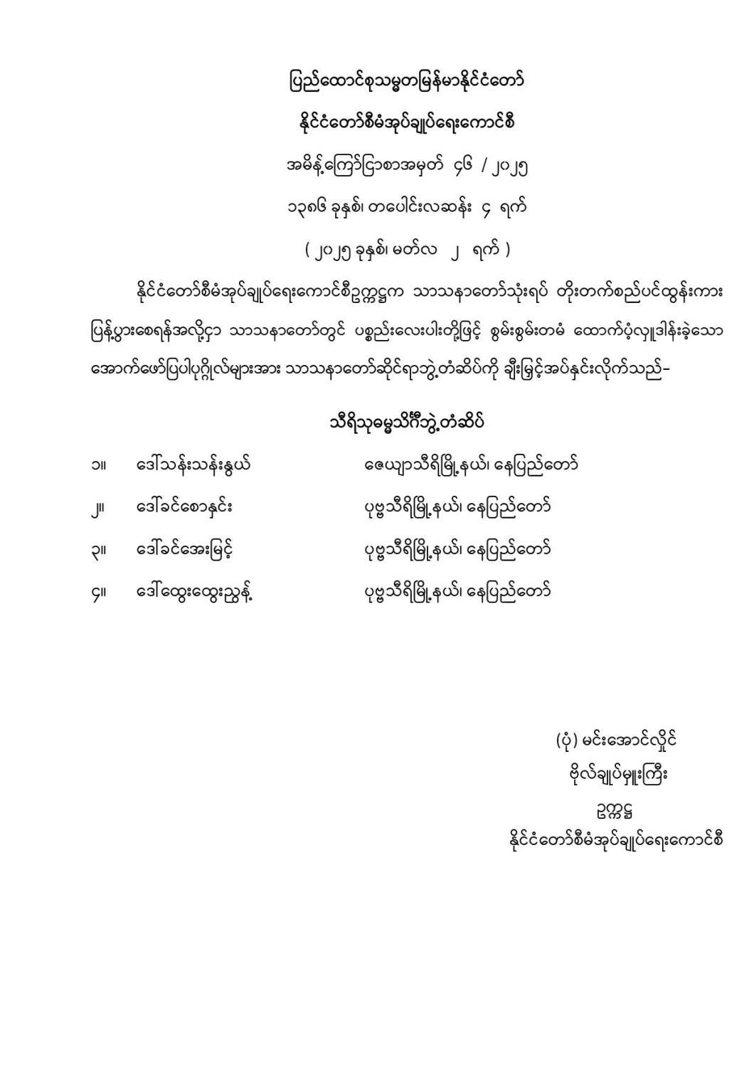ဝန်ကြီးဌာန ကြေညာချက်များ