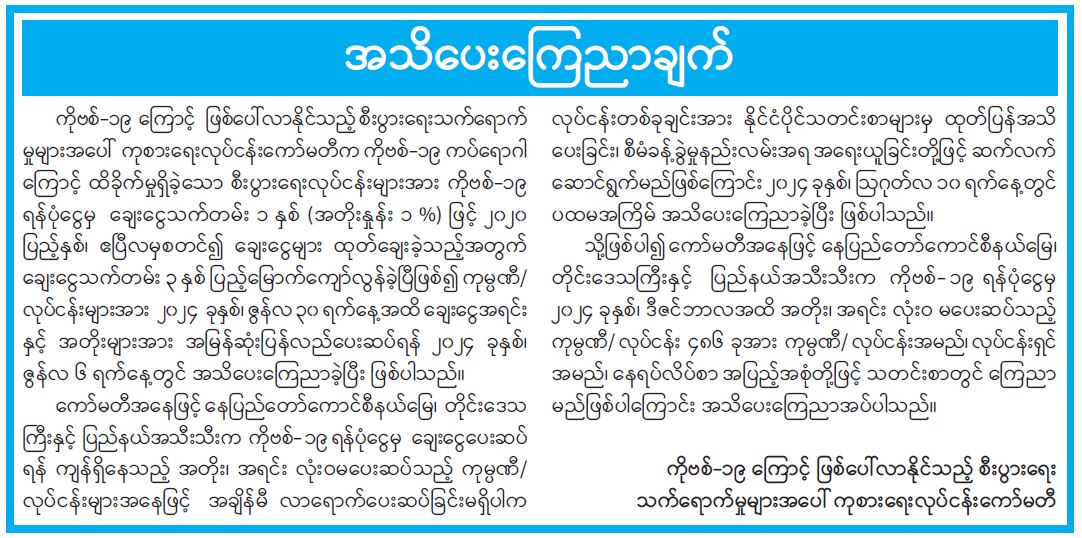 ဦးစီးဌာနနှင့် လုပ်ငန်းများ၏ ကြေညာချက်များ