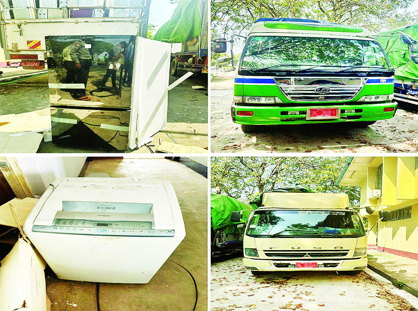 ယင်းအပြင် မန္တလေးတိုင်းဒေသကြီး တရားမဝင်ကုန်သွယ်မှုတိုက် ဖျက်ရေးအထူးအဖွဲ့၏ စီမံခန့်ခွဲမှုဖြင့် တာဝန်ကျပူးပေါင်းအဖွဲ့များက စစ်ဆေးမှုများဆောင်ရွက်ခဲ့ရာ ရတနာပုံတံတား (မန္တလေး) စစ်ဆေးရေးဂိတ်၌ မန္တလေးမြို့မှ မြစ်ကြီးနားမြို့သို့ သွားရောက်မည့် မော်တော်ယာဉ်သုံးစီးနှင့် မန္တလေးမြို့မှ ဖားကန့်မြို့သို့သွားရောက်မည့် မော်တော်ယာဉ်တစ်စီးတို့ပေါ်မှ တရားဝင်စာရွက်စာတမ်း အထောက်အထားတင်ပြနိုင်ခြင်းမရှိသည့် လူသုံးကုန်ပစ္စည်း ၃၃ မျိုး၊ လုပ်ငန်းသုံးပစ္စည်း ၁၂ မျိုး (ခန့်မှန်းတန်ဖိုးငွေကျပ် ၇၄၂၄၆၄၉၀)နှင့် အဆိုပါပစ္စည်းများ တင်ဆောင်လာသည့် Gallop Truck တစ်စီး၊ Nissan Condor Truck တစ်စီး၊ Mitsubishi Canter Truck တစ်စီး၊ Nissan Diesel Tractor Head တစ်စီးနှင့်နောက်တွဲယာဉ် တစ်တွဲ (ခန့်မှန်းတန်ဖိုးငွေကျပ် ၁၅၅၀၀၀၀၀၀) ကိုလည်းကောင်း၊ ကျွဲတပ်ဆုံစစ်ဆေးရေးဂိတ်၌ တောင်ကြီးမြို့မှ မန္တလေးမြို့သို့ မောင်းနှင်လာသည့် မော်တော်ယာဉ်တစ်စီးပေါ်မှ တရားဝင်စာရွက်စာတမ်းအထောက်အထား တင်ပြနိုင်ခြင်းမရှိသည့် လုပ်ငန်းသုံးပစ္စည်းနှစ်မျိုး (ခန့်မှန်းတန်ဖိုးငွေကျပ် ၁၅၆၀၀၀၀၀)နှင့် အဆိုပါပစ္စည်းများ တင်ဆောင်လာသည့် Jin Bei Haise Mini Bus တစ်စီး (ခန့်မှန်းတန်ဖိုးငွေကျပ် ၃၅၀၀၀၀၀၀) ကိုလည်းကောင်း၊ ပလိပ်မြို့လမ်းခွဲအနီး၌ မော်တော်ယာဉ် တစ်စီးပေါ်မှ တရားဝင်စာရွက်စာတမ်း အထောက်အထားတင်ပြနိုင်ခြင်းမရှိသည့် စားသောက်ကုန်ပစ္စည်းတစ်မျိုး (ခန့်မှန်းတန်ဖိုးငွေကျပ် ၄၂၀၀၀၀၀၀)နှင့် အဆိုပါပစ္စည်းများ တင်ဆောင်လာသည့် Mitsubishi Fuso Truck တစ်စီး (ခန့်မှန်းတန်ဖိုးငွေကျပ် ၃၅၀၀၀၀၀၀) ကိုလည်းကောင်း၊ ကျောက်ဆည်မြို့ မြို့ရှောင်လမ်း၌ မော်တော်ယာဉ် တစ်စီးပေါ်မှ တရားဝင်စာရွက်စာတမ်း အထောက်အထားတင်ပြနိုင်ခြင်းမရှိသည့် လုပ်ငန်းသုံးပစ္စည်း တစ်မျိုး (ခန့်မှန်း တန်ဖိုးငွေကျပ် ၇၂၃၉၃၇၅၀) နှင့် အဆိုပါပစ္စည်းများ တင်ဆောင်လာသည့် Isuzu Giga Truck တစ်စီး (ခန့်မှန်းတန်ဖိုးငွေကျပ် ၇၆၀၀၀၀၀၀) ကိုလည်းကောင်း စုစုပေါင်းခန့်မှန်းတန်ဖိုးငွေကျပ် ၅၀၅၂၄၀၂၄၀ ကို ဖမ်းဆီးရမိခဲ့ပြီး အကောက်ခွန်လုပ်ထုံးလုပ်နည်းများနှင့်အညီ အရေးယူဆောင်ရွက်လျက်ရှိသည်။