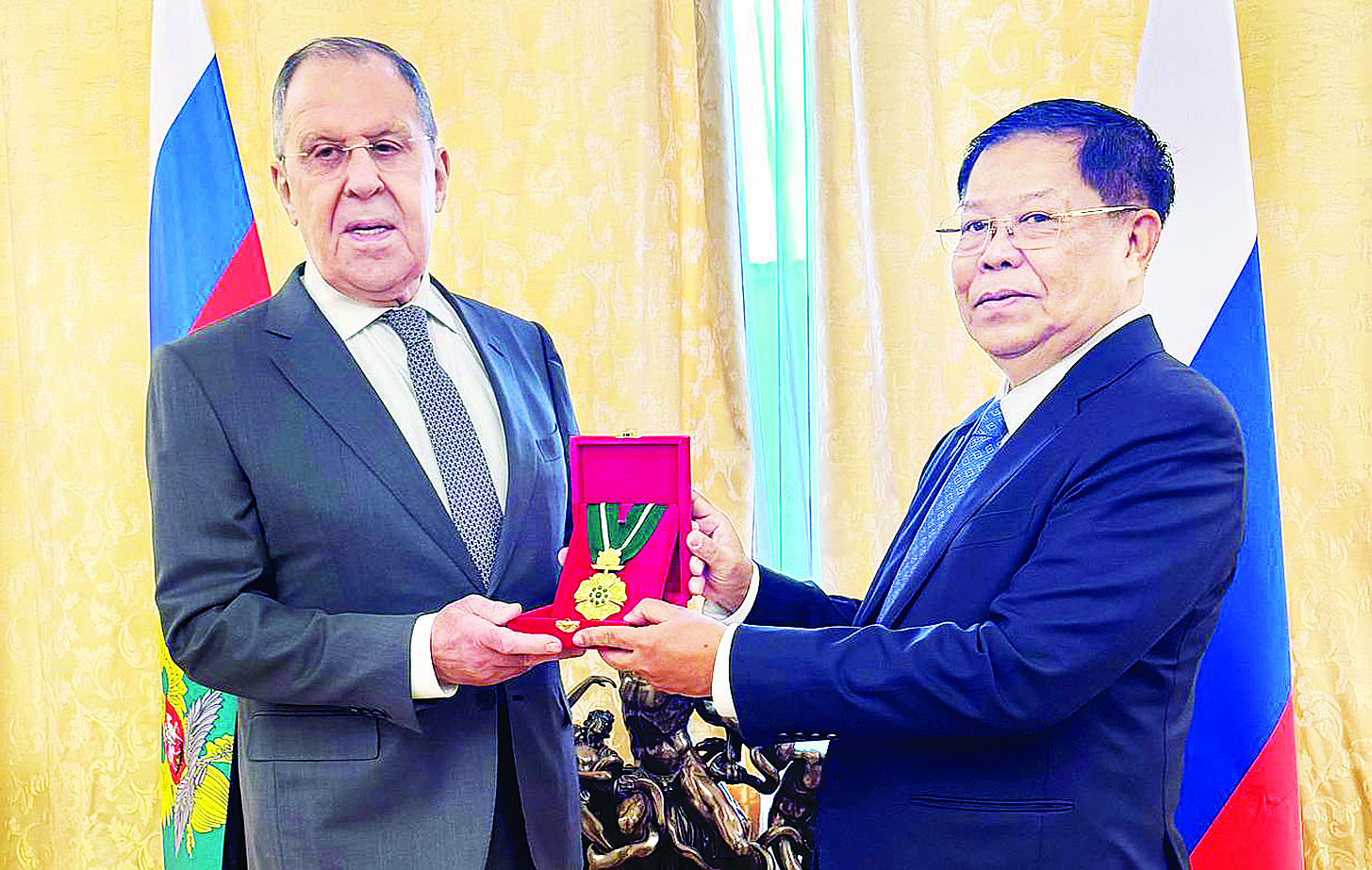 ရုရှားဖက်ဒရေးရှင်းနိုင်ငံ မော်စကိုမြို့၌ တရားဝင်ချစ်ကြည်ရေးခရီးရောက်ရှိနေသည့် နိုင်ငံတော်စီမံအုပ်ချုပ်ရေးကောင်စီဥက္ကဋ္ဌ နိုင်ငံတော်ဝန်ကြီးချုပ် ဗိုလ်ချုပ်မှူးကြီးမင်းအောင်လှိုင်က ရုရှား ဖက်ဒရေးရှင်းနိုင်ငံ နိုင်ငံခြားရေးဝန်ကြီး မစ္စတာဆာဂျီဗစ်တရာဗစ်ချ် လတ်ဗ်ရော့အား ပေးအပ်ချီးမြှင့်သည့် စည်သူဘွဲ့အား ခရီးစဉ်တွင်လိုက်ပါလာသည့် ဒုတိယဝန်ကြီးချုပ်နှင့် နိုင်ငံခြားရေးဝန်ကြီးဌာန ပြည်ထောင်စုဝန်ကြီး ဦးသန်းဆွေက နိုင်ငံတော်စီမံအုပ်ချုပ်ရေးကောင်စီဥက္ကဋ္ဌ ကိုယ်စားမတ် ၅ ရက် ဒေသစံတော်ချိန် နံနက် ၁၀ နာရီခွဲတွင် ရုရှားနိုင်ငံခြားရေးဝန်ကြီးဌာန၌ ချီးမြှင့်အပ်နှင်းခဲ့သည်။