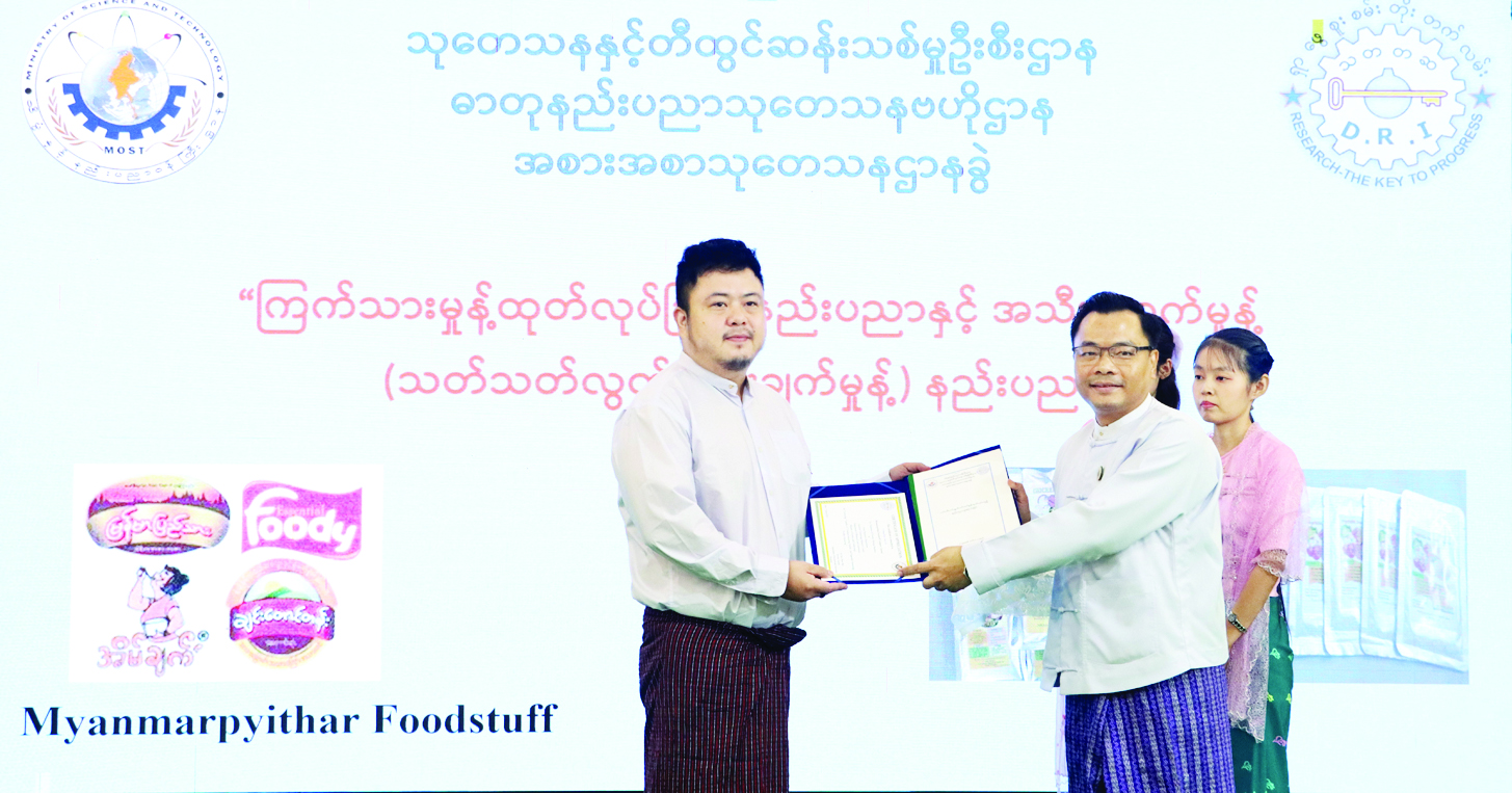 သိပ္ပံနှင့်နည်းပညာဝန်ကြီးဌာန သုတေသနနှင့်တီထွင်ဆန်းသစ်မှုဦးစီးဌာန (DRI) မှ MSME လုပ်ငန်းရှင်ကိုးဦးထံ နည်းပညာလွှဲပြောင်းပေးအပ်ပွဲနှင့် မဲခေါင်-လန်ချန်း ပူးပေါင်းဆောင်ရွက်မှု အထူးရန်ပုံငွေစီမံကိန်း (၂၀၂၂) ဖြင့် ပူးပေါင်းဆောင်ရွက်သော အစားအသောက်ဘေးအန္တရာယ်ကင်းရှင်းရေး ဓာတ်ခွဲခန်းစင်တာဆိုင်ရာ အသိပညာပေးပွဲ အခမ်းအနားကို ယမန်နေ့နံနက်ပိုင်းတွင် ရန်ကုန်မြို့ရှိ အဆိုပါဦးစီးဌာန၌ ကျင်းပသည်။