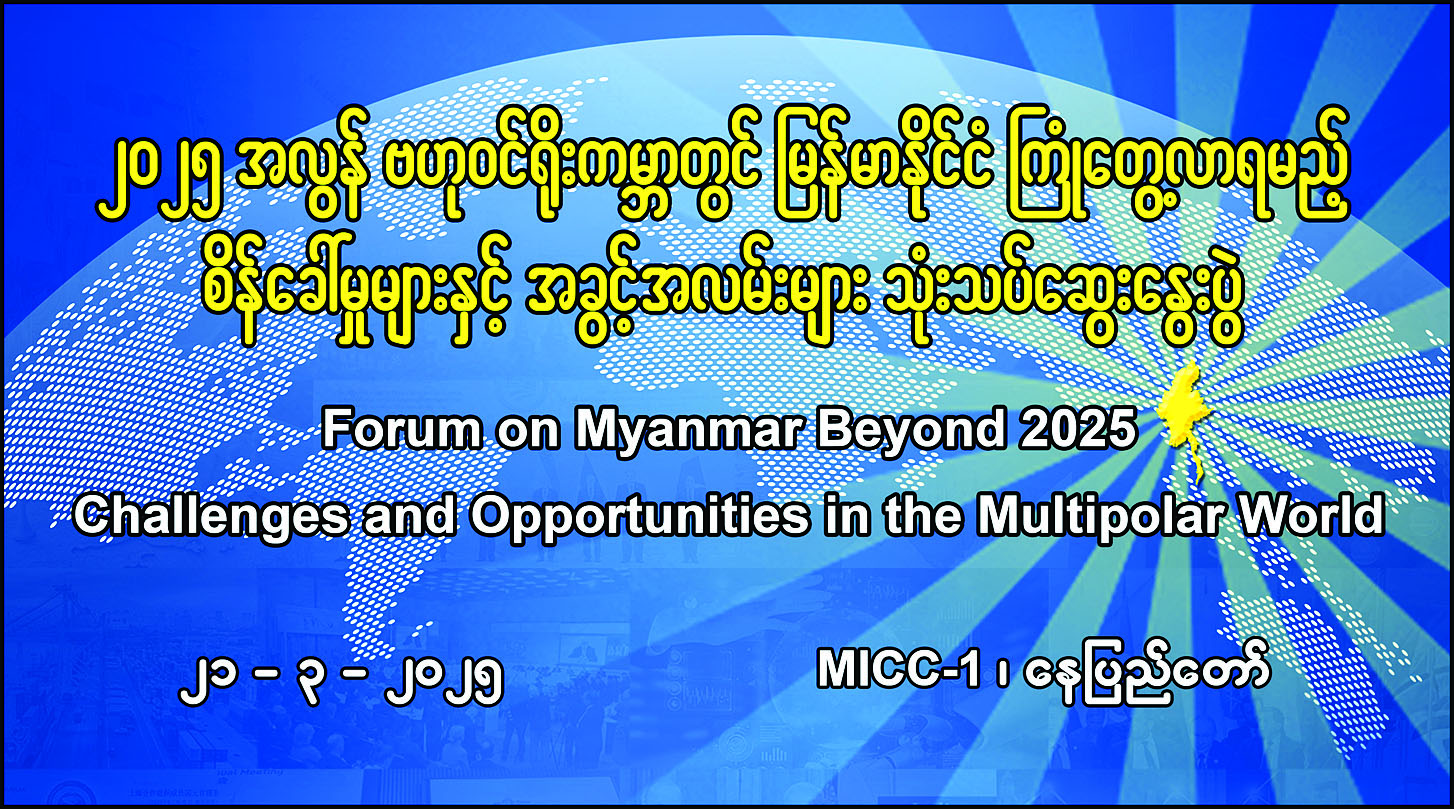 ၂၀၂၅ အလွန် ဗဟုဝင်ရိုးကမ္ဘာတွင် မြန်မာနိုင်ငံ ကြုံတွေ့လာရမည့် စိန်ခေါ်မှုများနှင့် အခွင့်အလမ်းများ သုံးသပ်ဆွေးနွေးပွဲ 03/12/2025