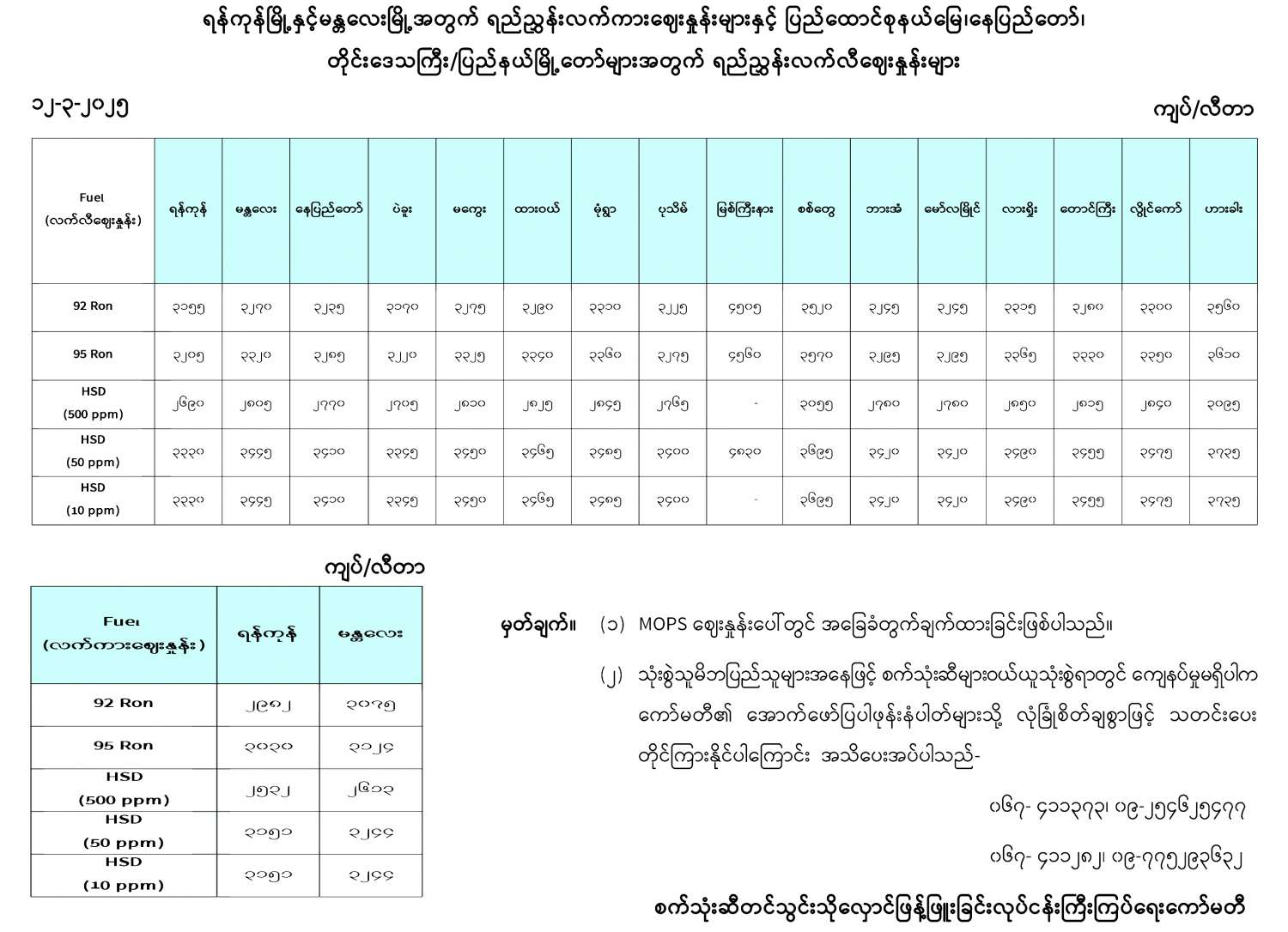 ရန်ကုန်မြို့နှင့် မန္တလေးမြို့အတွက် ရည်ညွှန်းလက်ကားဈေးနှုန်းများနှင့် ပြည်ထောင်စုနယ်မြေ နေပြည်တော်၊ တိုင်းဒေသကြီး/ ပြည်နယ် မြို့တော်များအတွက် ရည်ညွှန်းလက်လီဈေးနှုန်းများ 03/12/2025