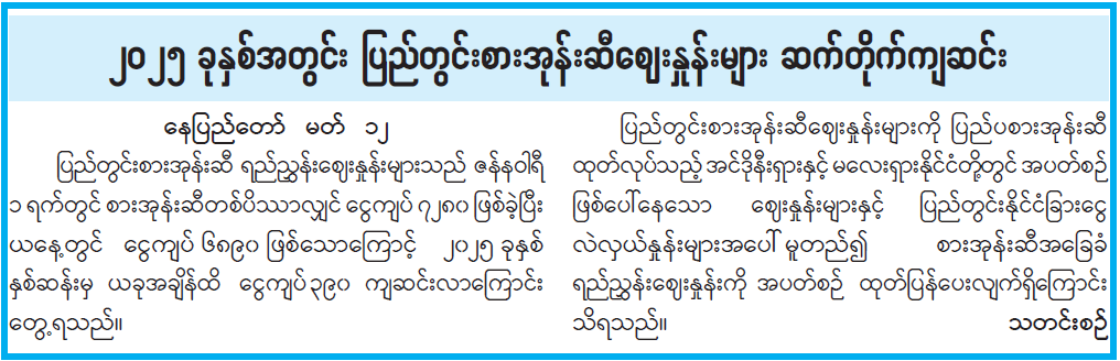 ပြည်တွင်းစားအုန်းဆီ ရည်ညွှန်းဈေးနှုန်းများသည် ဇန်နဝါရီ ၁ ရက်တွင် စားအုန်းဆီတစ်ပိဿာလျှင် ငွေကျပ် ၇၂၈၀ ဖြစ်ခဲ့ပြီး ယနေ့တွင် ငွေကျပ် ၆၈၉၀ ဖြစ်သောကြောင့် ၂၀၂၅ ခုနှစ် နှစ်ဆန်းမှ ယခုအချိန်ထိ ငွေကျပ် ၃၉၀ ကျဆင်းလာကြောင်း တွေ့ရသည်။
