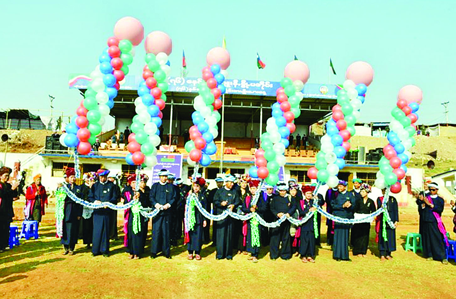 ဦးစွာ ပြည်နယ်ဝန်ကြီးချုပ်၊ တိုင်းမှူး၊ ပအိုဝ်းကိုယ်ပိုင်အုပ်ချုပ်ခွင့်ရဒေသ ဦးစီးဥက္ကဋ္ဌနှင့် တာဝန်ရှိသူများက ပအိုဝ်းအမျိုးသားနေ့ အထိမ်းအမှတ်အခမ်းအနားကို ဖဲကြိုးဖြတ်ဖွင့်လှစ်ပေးသည်။