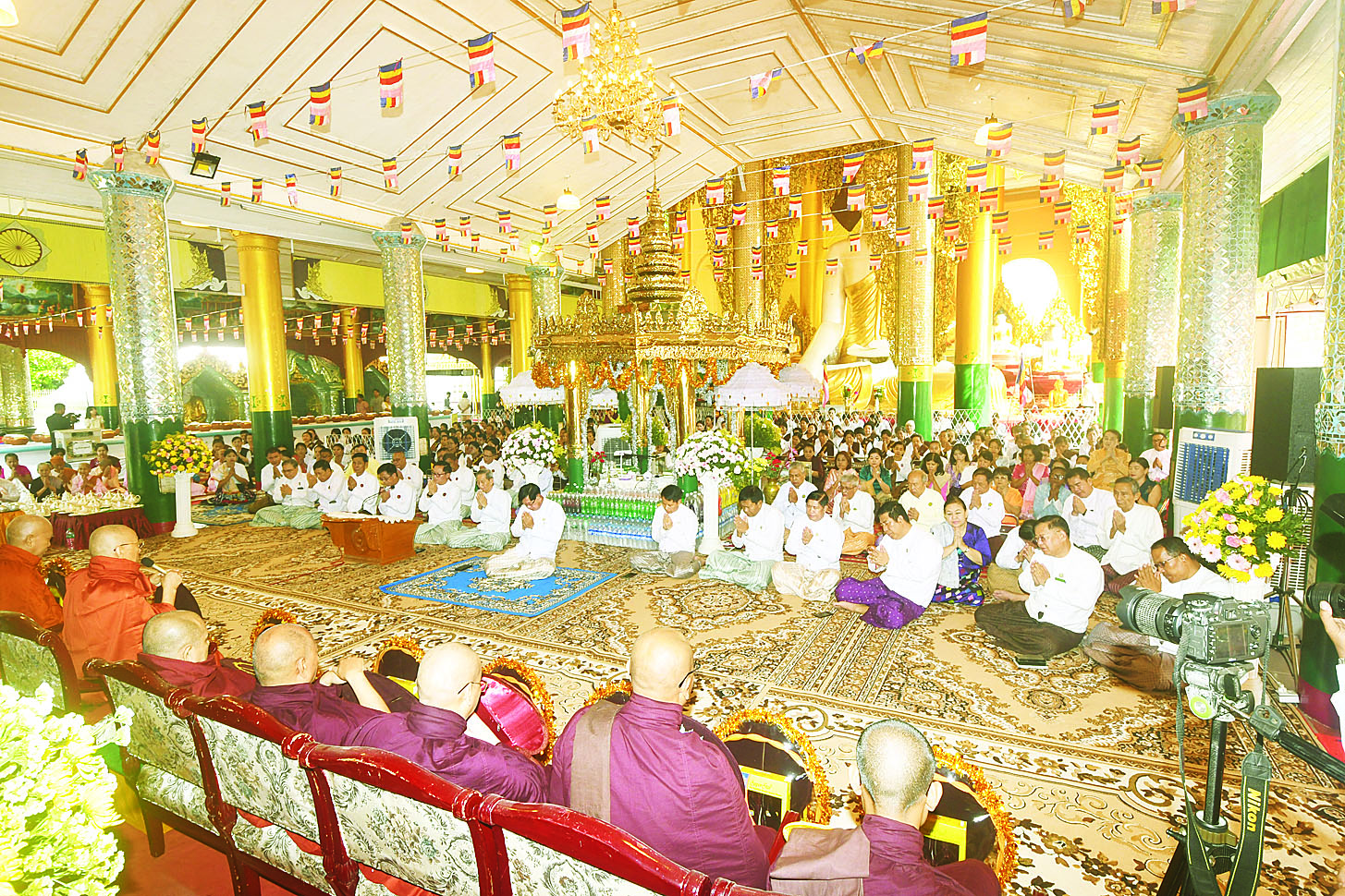 ရွှေတိဂုံစေတီတော် ဘဏ္ဍာတော်ထိန်းဂေါပကအဖွဲ့က ကြီးမှူးကျင်းပသည့် ရွှေတိဂုံစေတီတော်မြတ်ကြီး၏ တပေါင်းလပြည့်နေ့ဆွမ်းတော်ကြီး ဆက်ကပ်လှူဒါန်းပွဲနှင့် (၂၆၁၃) နှစ်မြောက် ဗုဒ္ဓပူဇနိယတပေါင်းပွဲတော်အသံမစဲမဟာပဋ္ဌာန်းရွတ်ဖတ်ပူဇော်ပွဲ အောင်ပွဲရေစက်ချအခမ်းအနားကို ယနေ့နံနက်ပိုင်းမှစတင်၍ စေတီတော်ရင်ပြင်သတ်မှတ်နေရာများ ၌ ကျင်းပသည်။