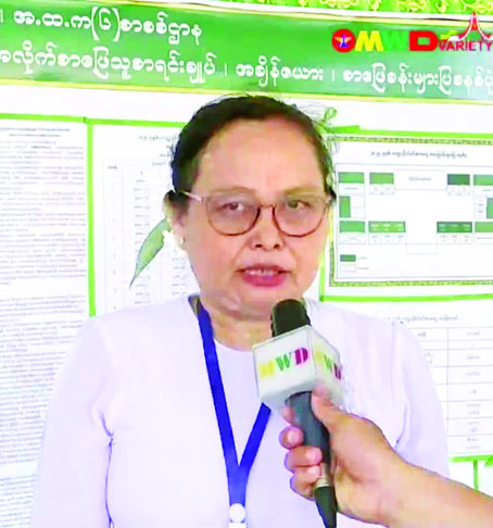 “ကျွန်မက အ.ထ.က (၆) စာစစ်ဌာနရဲ့ ကြီးကြပ်ရေးမှူးဖြစ်ပါတယ်။ ကျောင်းသားဦးရေ စာဖြေသူစုစုပေါင်း ၃၇၄ ဦး ရှိပါတယ်။ ပျက်ကွက်က ဒီနေ့အထိဆိုရင်တော့ ၁၉ ဦးရှိပါတယ်။ အားလုံးပေါင်း ၃၅၆ ဦး ဖြေဆိုပါတယ်။ ရာခိုင်နှုန်းအားဖြင့် ၉၄ ဒသမ ၉၂ ရာခိုင်နှုန်းပါ။ ကျောင်းသားတွေ အေးအေးချမ်းချမ်းနဲ့ ဖြေဆိုနေတာကို တွေ့ရှိရပါတယ်။ ထွက်လာတယ်ဆိုလို့ရှိရင်လည်း အင်္ဂလိပ်စာနေ့ကလည်း တော်တော်ဖြေနိုင်တဲ့ပုံပါပဲ။ မြန်မာစာနေ့ကလည်း ဖြေနိုင်ပါတယ်။ သင်္ချာနေ့ကလည်း ပျော်ပျော်ရွှင်ရွှင်ထွက်လာတာ တွေ့ရပါတယ်။ ကွာခြားချက်ကတော့ အရင်တုန်းကတော့ GRADE-10 ဆိုတဲ့အတွက် ကျောင်းသားရဲ့ အသက်အရွယ်ဟာ ၁၅ နှစ်၊ ၁၆နှစ် ပဲရှိပါတယ်။ အခုအခါ GRADE-12 လို့ ဖြစ်သွားတဲ့အတွက်ကြောင့်မို့လို့ ကျွန်မတို့ဟာ စာပေတွေကလည်း အဆင့်မြှင့်လိုက်တယ်။ နိုင်ငံတကာအဆင့်ပေါ့။