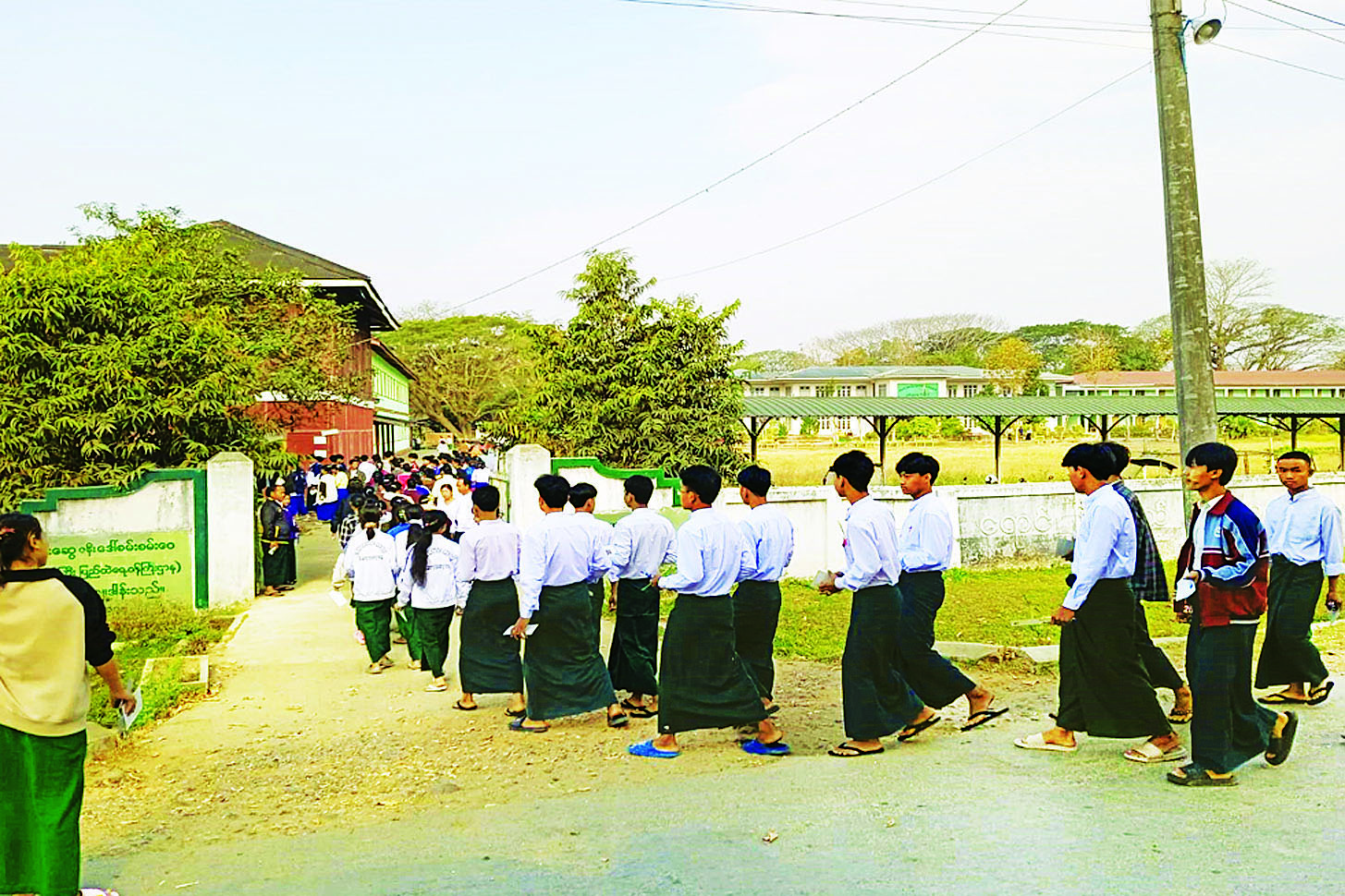 ဦးစွာ စာမေးပွဲဖြေဆိုခြင်း မပြုမီ ဆရာ ဆရာမများက ကျောင်းသား ကျောင်းသူများအား စာမေးပွဲဖြေဆိုခွင့်ကတ်များ မှန်/မမှန် စစ်ဆေးခြင်းများနှင့် လိုအပ်သည့် စစ်ဆေးမှုများကို စာမေးပွဲစည်းမျဉ်းစည်းကမ်းများနှင့်အညီ စနစ်တကျဆောင်ရွက်ကြသည်။ ယင်းသို့ ကျောင်းသား ကျောင်းသူများ စိတ်အေးချမ်းသာစွာဖြေဆိုနိုင်ရေးအတွက် ကျောင်းဝင်းအတွင်းနှင့် အပြင်များ၌ သက်ဆိုင်ရာ လုံခြုံရေးအဖွဲ့ဝင်များ၊ ကျန်းမာရေးဝန်ထမ်းများ၊ မီးသတ်တပ်ဖွဲ့ဝင်များနှင့် ရပ်ကွက်/ ကျေးရွာ အုပ်ချုပ်ရေးအဖွဲ့ဝင်များက စနစ်တကျ စောင့်ကြပ်ကြည့်ရှုပေးလျက်ရှိသည်။