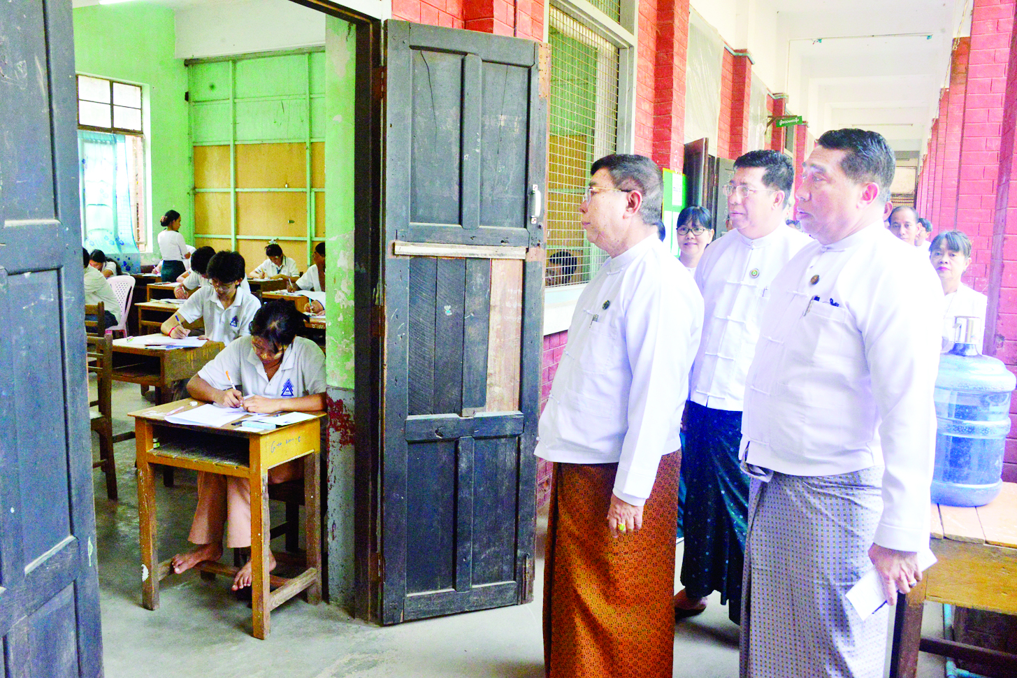 ဆက်လက်၍ ပြည်ထောင်စုဝန်ကြီးနှင့်တာ၀န် ရှိသူများသည် စမ်းချောင်းမြို့နယ် အမှတ် (၂) အခြေခံပညာအထက်တန်းကျောင်း လမ်းမတော်မြို့နယ်ရှိ အမှတ်(၁) အခြေခံပညာအထက်တန်းကျောင်း၊ ဒဂုံမြို့နယ် အမှတ်(၁)အခြေခံပညာအထက်တန်း ကျောင်းနှင့် တာမွေမြို့နယ် အမှတ်(၄)အခြေခံပညာ အထက်တန်းကျောင်းများရှိ စာစစ်ဌာနများသို့ သွားရောက်၍ ကျောင်းသား ကျောင်းသူများ အေးချမ်း စွာ စာမေးပွဲဖြေဆိုနေမှုများကို လှည့်လည်ကြည့်ရှု အားပေးပြီး လိုအပ်သည်များကို ဖြည့်ဆည်းဆောင် ရွက်ပေးသည်။