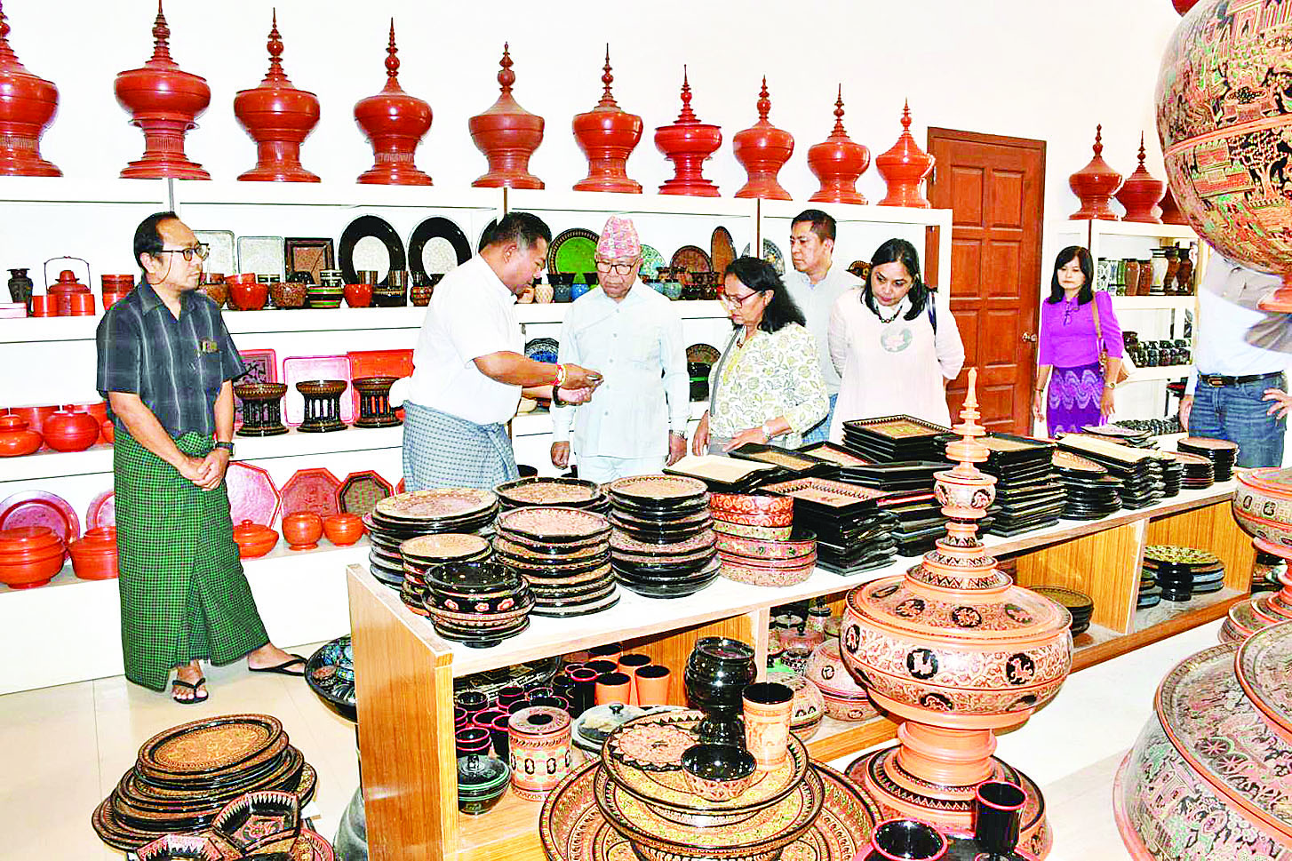 မတ် ၂၁ ရက်က နေပြည်တော်၌ ကျင်းပသော ၂၀၂၅ အလွန် ဗဟုဝင်ရိုးကမ္ဘာတွင် မြန်မာနိုင်ငံကြုံတွေ့လာရမည့် စိန်ခေါ်မှုများနှင့်အခွင့်အလမ်းများ သုံးသပ်ဆွေးနွေးပွဲတက်ရောက်ခဲ့သည့် နီပေါဝန်ကြီးချုပ်ဟောင်း Mr. Madhav Kumar Nepal နှင့် အဖွဲ့သည် ယနေ့နံနက်ပိုင်းတွင် ပုဂံရှေးဟောင်းယဉ်ကျေးမှုနယ်မြေရှိ ထီးလိုမင်းလိုဘုရားသို့ သွားရောက်ဖူးမြော်ကြသည်။